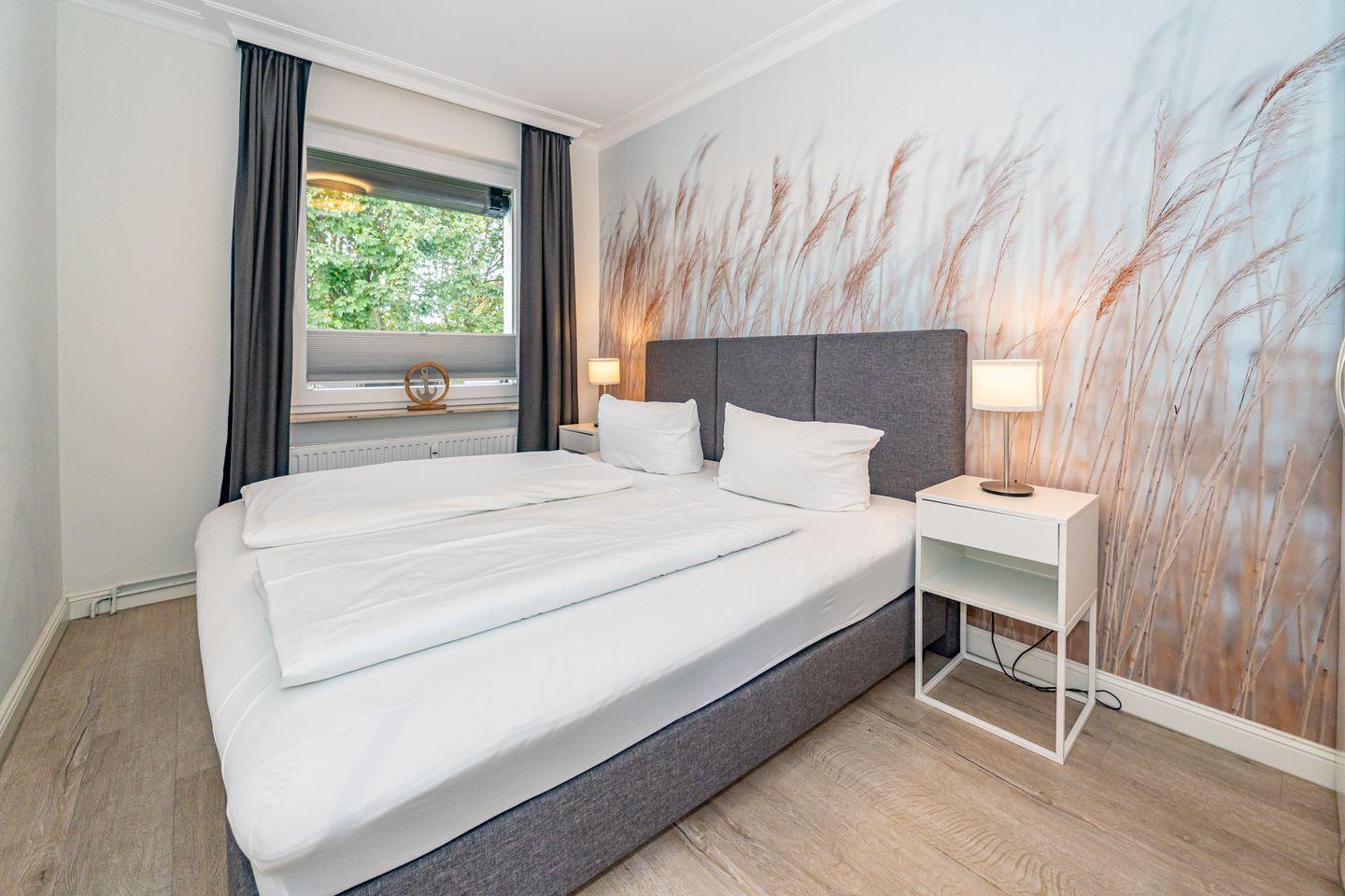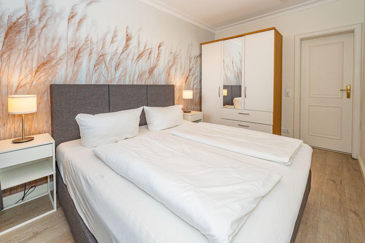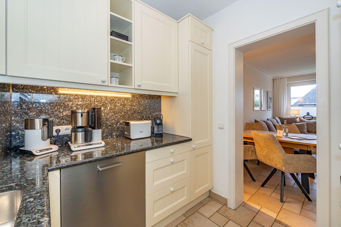 Ruhig gelegene 3- Zimmer-Ferienwohnung (55 m²) in Alt-Westerland "Ferienliebe Westerland" mit Südbalkon. Über eine offene Wendeltreppe gelangen Sie ins 1. OG wo sich die Ferienwohnung befindet. Von einem Flur aus erreichen Sie das helle, moderne Wohn- / Esszimmer mit direktem Zugang zum Südbalkon mit Gartenmöbeln, auf dem Sie bis in den späten Abend die Sonne genießen können. An diesen Bereich grenzt die separate, voll ausgestattete Küche mit Geschirrspüler, Cerankochfeld, Backofen, Kühlschrank und Nespresso Maschine und Filterkaffeemaschine. Zwei Schlafzimmer mit Boxspringbetten und genügend Stauraum für Ihre Garderobe, sowie das Duschbad erreichen Sie ebenfalls direkt vom Flur aus. Die Ferienwohnung "Ferienliebe Westerland" ist ein Nichtraucherdomizil, in dem kleine, gut erzogene Hunde erlaubt sind nach vorheriger Anmeldung (10,- € pro Tier/Tag). Der dazugehörige Parkplatz befindet sich direkt vor dem Haus.