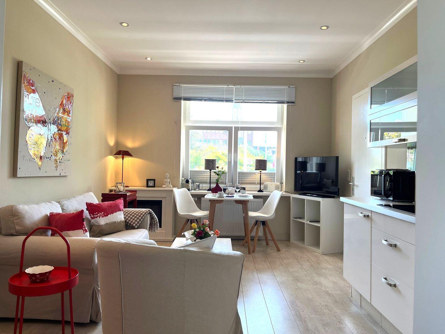 Moderne Ferienwohnung mit Kamin, nahe Strand und Zentrum in Westerland, ideal für 2 Personen.