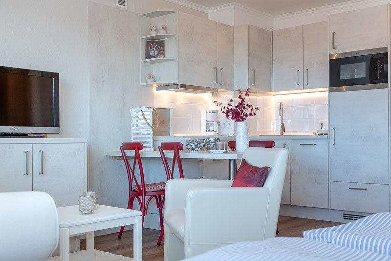 Modernes 1-Zimmer-Appartement in Westerland, nah am Strand und mit schönem Nord-West-Balkon.