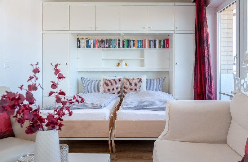 Dieses 1 Zimmer-Appartement befindet sich in einem mehrstöckigen Appartementhaus in kurzer Laufdistanz zum Strand, ca. 1 Minuten vom Stadtkern entfernt. Die Wohnung ist hell und modern , mit viel Liebe eingerichtet. Diese Wohnung hat Fliesenboden. Im Wohnbereich befindet sich ein Essplatz und eine Sitzgruppe. Der großzügige Balkon zeigt nach Nord/ West . Die Küche ist im Wohnbereich integriert. Zum Schlafen werden die 2 Einzelbetten (80 x 200) ausgeklappt (Schrankbetten). TV, CD Radio sind vorhanden. Neues Bad mit großer Eckdusche. Im Haus: Ebenerdiger Fahrstuhl, Waschküche mit Münzautomaten. Ihr kostenloser PKW-Stellplatz befindet sich direkt vor dem Haus. Ideal für 2 Personen.
