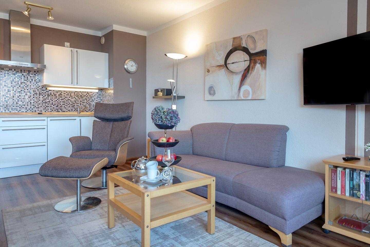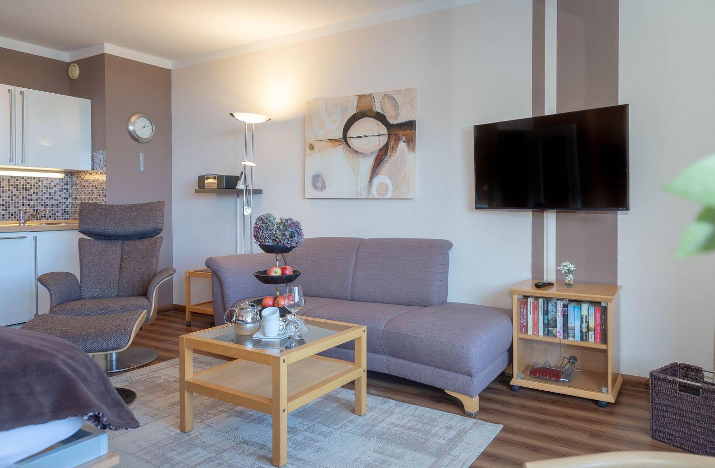 Haus Ornum, Viktoriastraße 1-3, 2. OG, App. 17. Schickes, ruhiges 1-Zimmer Appartement für 2 Personen im 2. Obergeschoss mit Fahrstuhl, möblierter Balkon nach Osten
