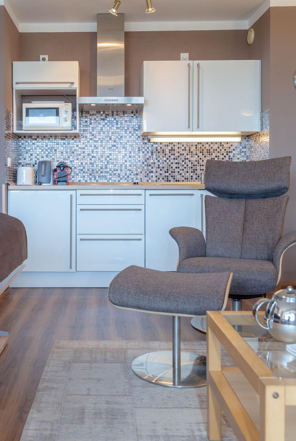 In dieser Whg. werden Sie nichts vermissen: Das App. ist u.a. bestückt mit: Nespresso Kapselmaschine, Geschirrspüler, Mikrowelle, Smart-TV, W-LAN, Fön.