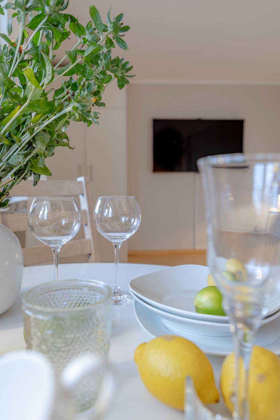 Das Appartement ist mit hellem Laminatboden ausgestattet und präsentiert sich in einem zeitlos modernen Einrichtungsstil, der Leichtigkeit und Behaglichkeit harmonisch verbindet.