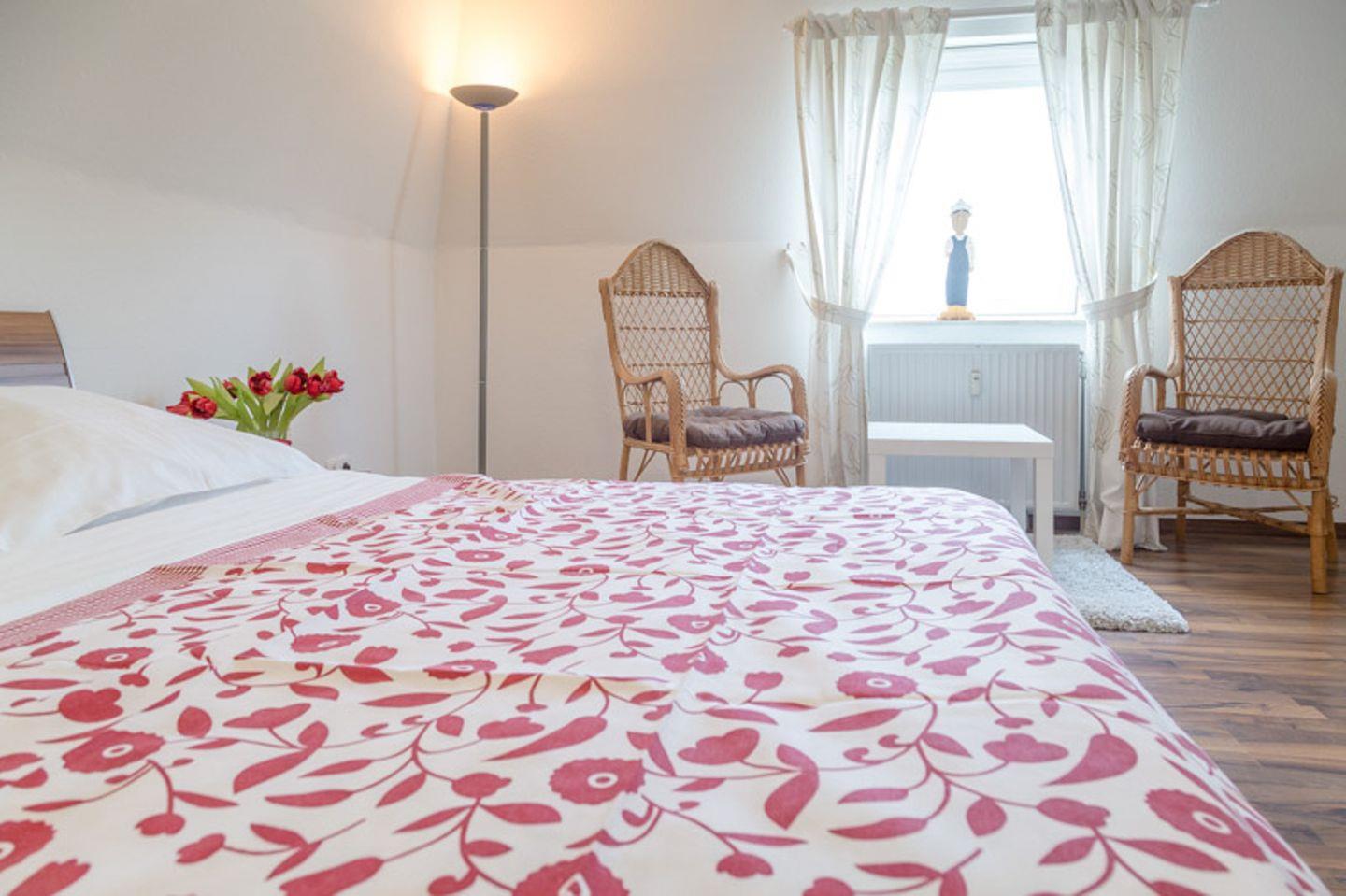 Die Wohnung befindet sich in der 3. Etage des beliebten Appartementhauses gelegen in der Nähe des Westerländer Bahnhofs in kurzer Laufdistanz zum Strand. Für die Gäste des Hauses steht ein Schwimmbad und eine Sauna im Kellergeschoss zur Verfügung. Im Wohnbereich (Fliesenboden) befindet sich ein Essplatz und eine Sitzgruppe (zusätzliche Schlafgelegenheit für 3. und 4. Person in den neuen Einzelschrankbetten). Die Küche ist separat und komplett ausgestattet. Im Schlafzimmer (OG) befindet sich ein großes Doppelbett und ein 2. TV. Zu dieser Wohnung gehört ein kostenloser PKW Stellplatz in der Nähe und auch kostenfreies WLAN können Sie gern nutzen.