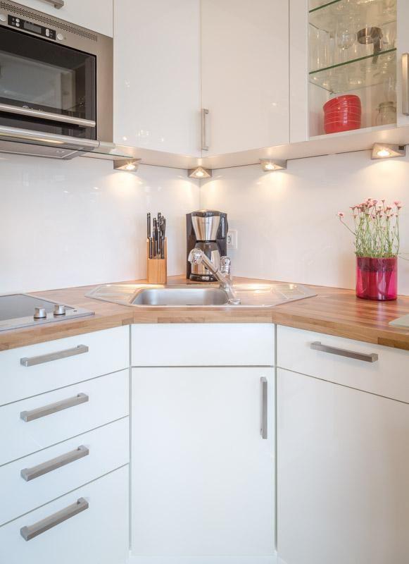 Mit ihren 26 m² bietet die Wohnung genügend Platz für zwei Gäste und ist optimal gestaltet, um höchsten Komfort und Gemütlichkeit zu gewährleisten. Das lichtdurchflutete Wohnzimmer ist offen zum Küchenbereich und ermöglicht einen geselligen Austausch. Die voll ausgestattete Küche verfügt über alles, was Sie brauchen, darunter eine Spülmaschine und eine Mikrowelle, sodass Sie auch im Urlaub nicht auf Ihre gewohnte Kochroutine verzichten müssen.