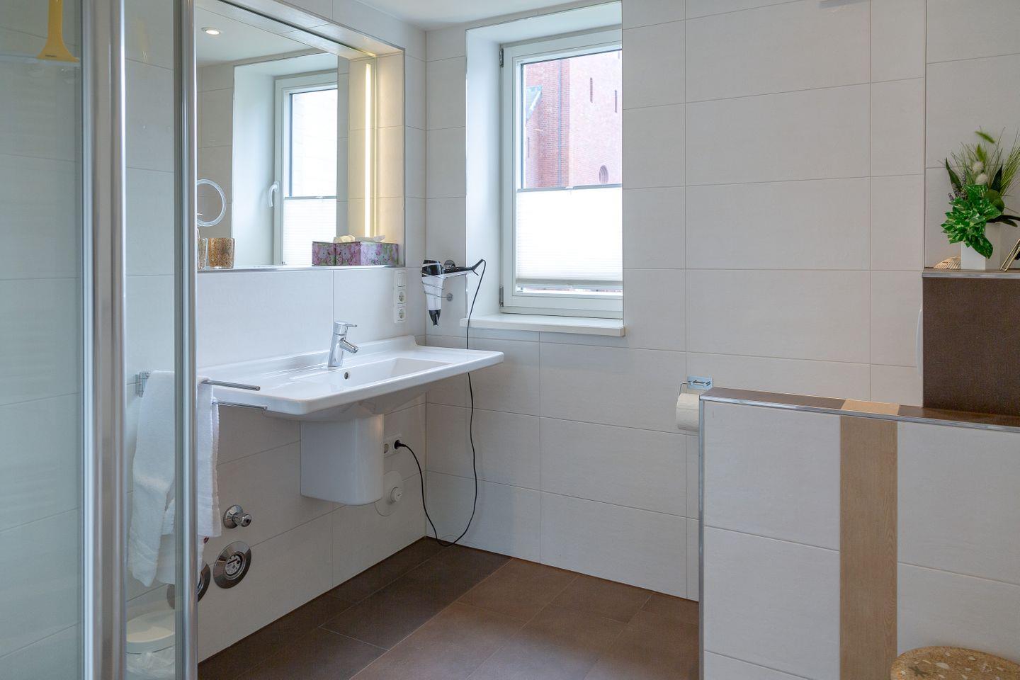 Viktoria Residenz, App. 10 in top Citylage: Diese sehr komfortable, lichtdurchflutete 2-Zimmerwohnung (ca. 50qm, 1.OG, Südbalkon) ist für 2 Personen ausgestattet. Wohn-/Essbereich mit hohem Komfort: SMART TV, 5.1-Surround-Sound, 3D-fähiger BluRay-/DVD-/CD-Player, Relaxsessel und viele weitere schicke Extras. Küchenzeile mit Quarzstein-Arbeitsplatte, Spülmaschine, MW, Nespresso- und Pad-Kaffeemaschine. Helles, modernes Tageslicht-Bad mit Handtuchtrockner und bodentiefer Dusche. Schlafzimmer mit Doppelbett (180x200) und SMART-TV. Hochwertige Tischlereinbauten in allen Räumen, ebenso Keramikfliesen. Das Nichtraucher-Appartement bietet einen kostenfreien Internetzugang und PKW-Stellplatz in der Tiefgarage an. Die Viktoria Residenz verfügt zudem über einen Aufzug, Münz-Waschmaschine, Trockner und einen Fahrradkeller.
