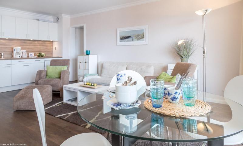 Modern eingerichtete 2,5-Zimmer-Wohnung direkt am Strand von Westerland mit Balkon und Seeblick.
