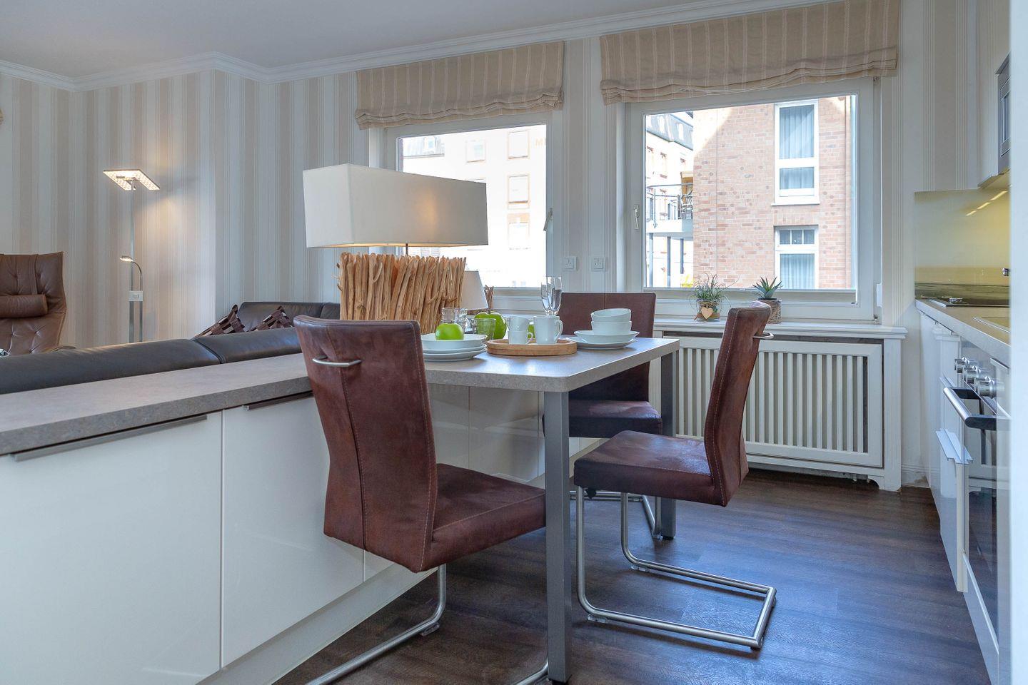 Direkt hinter dem Dünenkamm in kaum zu überbietender Wohnlage (50 Meter bis zum Strandübergang, 100 Meter bis zur Friedrichstraße), erwartet Sie auf rund 55 m² behagliche Gemütlichkeit gepaart mit allem erdenklichen Luxus