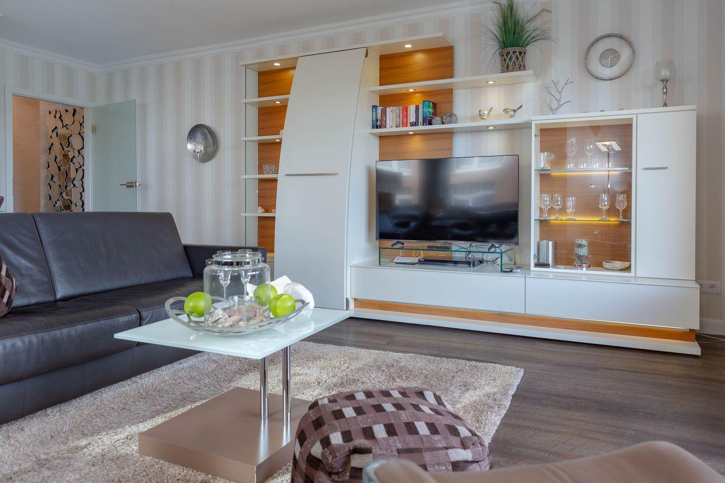 Direkt hinter dem Dünenkamm in kaum zu überbietender Wohnlage (50 Meter bis zum Strandübergang, 100 Meter bis zur Friedrichstraße), erwartet Sie auf rund 55 m² behagliche Gemütlichkeit gepaart mit allem erdenklichen Luxus. Die Wohnung befindet sich in der 1. Etage nur durch einen Fuß/Radweg und der Düne vom Strand entfernt. Statt Verkehrslärm erwartet Sie Meeresrauschen. Sie genießen den großzügigen Wohnbereich mit Schlafcouch (160 x 200), Relax-Sessel, großzügigem Flat Screen und offener, voll ausgestatteter Küche mit Essplatz. Großzügiger West-Balkon (2 x 4,3 m) mit Strandkorb und direktem Dünenblick. Daneben erwartet Sie ein separates Schlafzimmer mit Kabel-TV und elektr. verstellbarem Boxspringbett (180 x 200). Modernes Duschbad/WC mit Regendusche. Die Wohnung ist ausgestattet mit z.B. Geschirrspüler, Mikrowelle, Backofen, Ceranherd, Kabel-TV, Radio, Fön. Im Haus: Waschmaschine und Trockner zur entgeltlichen Benutzung. Die Wohnung verfügt über eine Duplexparkmöglichkeit in der TG für Kleinwagen (max. Höhe 1,5m; max. Länge 5m ;max. Gewicht 2t;). Die Benutzung erfolgt ausschließlich auf eigene Gefahr.