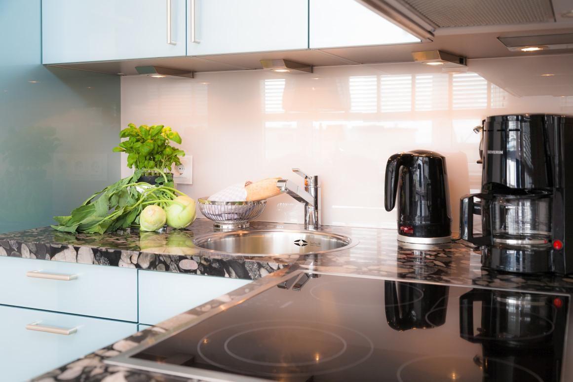 Mit 45 m² bietet die Ferienwohnung ausreichend Platz für bis zu drei Personen. Sie ist modern und geschmackvoll eingerichtet und verfügt über ein helles Schlafzimmer sowie ein einladendes Wohnzimmer, das offen zur voll ausgestatteten Küche gestaltet ist. Hier können Sie gemeinsam kochen und genießen, während Sie die entspannte Atmosphäre des Raumes erleben.