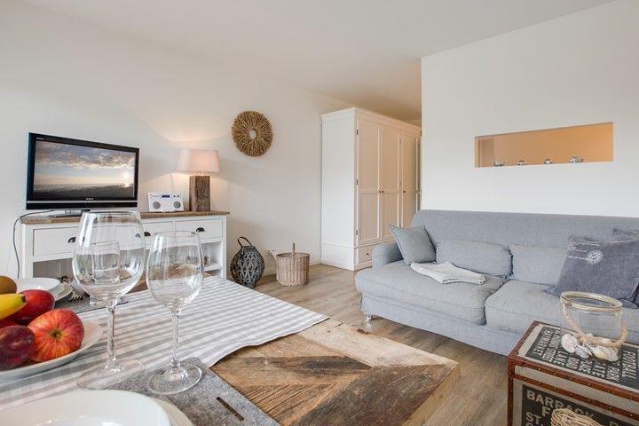 Dieses Domizil werden Sie lieben!! Sie wohnen in Top-Lage gleich vis a vie dem Strand von Westerland, in unmittelbarer Nachbarschaft zum Schwimmbad und der Innenstadt. Dieses herrliche, eben fertig gestellte Domizil bietet einfach ALLES: Schicke, moderne, hochwertige Ausstattung im Rivera Maison / Flamant BEACHHOUSE Style, hergerichtet als kleine exklusive Strandsuite: Küchenzeile mit Kühlschrank, Backofen, Filterkaffeemaschine, Wasserkocher, Toaster. Modernes Duschbad mit ebenerdiger (Regen-) Duschecke, kuscheliges Doppelbett (160 x 200) im sep. Schlafbereich, stilsicher gestalteter Wohnraum mit hochwertiger Möblierung und Flat-TV, i-Pod Station und sonnigem Südbalkon mit kleinem Meerblick. Im Haus: Waschküche, kein Fahrstuhl, PKW-Stellflächen (kostenpflichtig) in der Nähe. Diese Wohnung ist zu Ihrem Wunschtermin schon belegt? Dann schauen Sie sich doch einmal die Nachbarwohnung NEWPORT 1 an (Objekt Nr. 118). Offenes Haus WLAN.