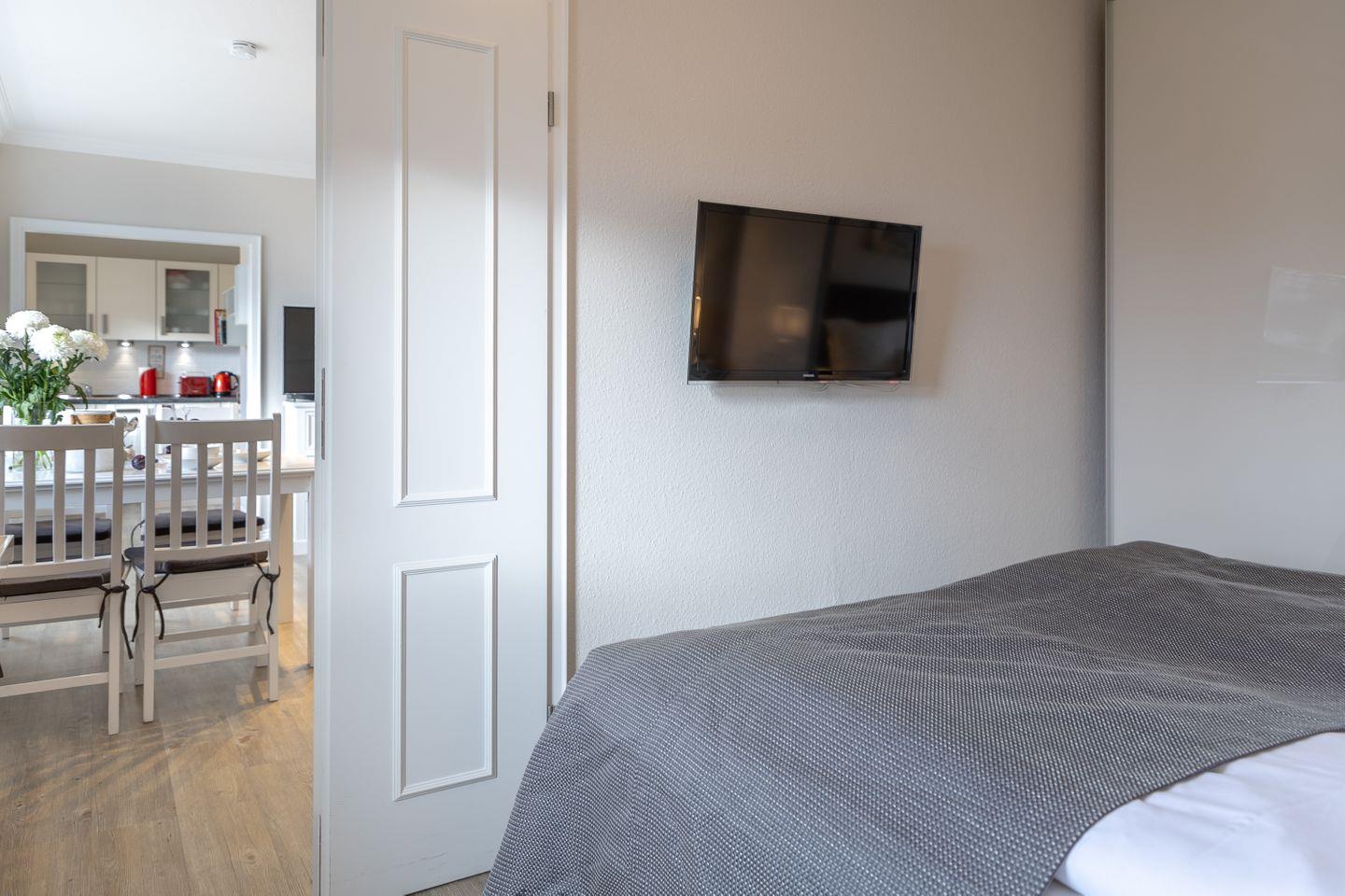 Die Ferienwohnung "On Shore" ist auch für Familien geeignet. Ein Schlafzimmer bietet nicht nur Platz für zwei Personen, sondern die bequeme Schlafcouch im Wohnzimmer lässt sich problemlos in eine weitere Schlafgelegenheit verwandeln. Damit ist genug Platz für alle, um einen erholsamen Schlaf nach einem Tag am Strand zu finden.