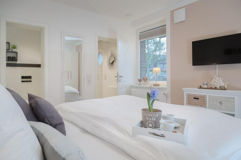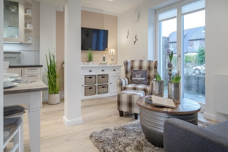 Genießen Sie den Luxus einer strand- und citynahen top modernen ausgestatteten Ferienwohnung mit über 43qm. Diese moderne Ferienwohnung hat 2 kleine Terrassen ( Nord u. Süd), sowie einen eigenen sep. Eingang, ohne Treppenhaus o.ä.. Ein Stellplatz vor dem Haus gehört zu dieser Wohnung. Die vielen schönen Extras in dieser Wohnung werden Sie schnell begeistern: Echtholzparkettboden, eine nagelneue schicke moderne, voll ausgestattete Küche, Terrasse mit Strandkorb (in den Sommermonaten), den Parkplatz finden Sie direkt vor der Tür. Genießen Sie doch Ihr Frühstück mal wieder draußen: Rund um die Wohnung verläuft der kleine Garten, eingefriedet von einem Sylter Friesenwall, mit herrlich leuchtend pinken Syltrosen in den Sommermonaten. In dieser Wohnung finden Sie natürlich auch freies W-LAN und 2 Flat TV zu Ihrer Verfügung. Ein modernes Bad mit ebenerdiger Regendusche und ein gemütliches Schlafzimmer mit einem modernen Boxspringbett und viel Stauraum runden das Angebot in dieser schönen Wohnung ab. Die Wohnanlage verfügt über eine Gemeinschaftswaschküche (mit Münzautomaten) im mittleren Haus, zu Ihrer Verfügung. Diese schöne Nichtraucherwohnung wird an 2 Personen vermietet Haustiere sind leider nicht erlaubt. Dies wird garantiert Ihr neuer LIEBLINGSPLATZ auf SYLT -