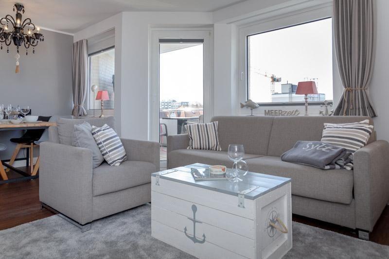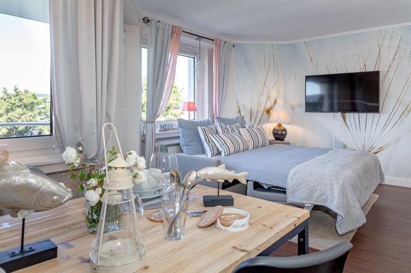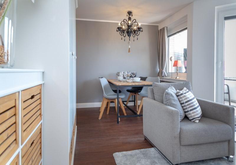 Hello my Beauty - Diese moderne Ferienwohnung besticht durch ihre Raumaufteilung, Lage und Ausstattung. Bei einer Wohnfläche von ca. 42m² für eine max. Belegung von 2 1/2 Personen, finden Sie hier alles um sich sofort wohl zu fühlen.Genießen Sie traumhafte Tage und einen erholsamen Aufenthalt in diesem top modernen Appartement. Zum Strand und der City sind es nur wenige Minuten zu Fuß. Die gesamte Wohnung ist mit schicken Designboden in Holzoptik ausgelegt. Heller Wohnraum mit gr. Schlafsofa 1,60 x 2,00m, Essecke und TV, W-LAN und Balkon nach Westen (mit Abendsonne). Küche mit Geschirrspüler. Schickes Bad mit bodentiefer Dusche. Kleines Schlafzimmer mit ,140 x 2,00m großen Doppelbett. Hinweis: Das Haus hat keinen Fahrstuhl, Parkmöglichkeiten finden Sie an der Straße. Dies ist eine Nichtraucherwohnung. Tierhaltung ist nicht gestattet.