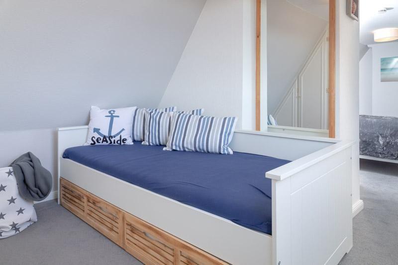 Top moderne 3-Zimmerwohnung SURFSIDE 2 in ruhiger, zentraler Lage in Westerland. Von hier erreichen Sie alle Sylt Aktivitäten sehr kurzfristig zu Fuß oder mit dem Rad. Die top Gastronomie (Alte Friesenstube, Webchristel, Jörg Müller) ist fußläufug entfernt. Ebenso der Strandübergang "Himmelsleiter". Bäcker, Lebensmittelmarkt, Fahrradverleih, Autoverleih, alles befindet sich direkt um die Ecke. Gemütliche Einrichtung mit allem, was man braucht. Großzügiges Wohn-/Esszimmer mit gemütlicher Sitzgruppe für die ganze Familie zum Entspannen. Perfekt für 4 Personen bzw. 2 Erwachsene und 3 Kinder. 3-Zi-Wohnung auf 2 Ebenen (ca. 65 m²). Ihnen steht ein eigener kleiner Terrassenbereich mit Strandkorb/Gartenmöbeln im Vorgarten (Südseite) zur Verfügung. Separate Küche mit Markengeräten, Filter-Kaffeemaschine sowie Nespresso-Kapselmaschine von Delonghi. 2 Schlafzimmer, eines davon im DG mit einem Doppelbett (180x200cm) mit zusätzlich ausziehbarem Einzelbett (90 x 200cm). Das andere Schlafzimmer mit einem Doppelbett (140x200cm). Frisch renoviertes Duschbad (Regendusche) mit Fenster und großem Waschtisch. 1 Flat-TV im Wohn-/Esszimmer, W-LAN, Blue-Ray-/DVD-Player, Hifi-Anlage mit Radio & CD-Player. Bad: Duschbad mit Föhn, Fenster mit Blick ins Grüne. Küche: Küchenzeile, Gefrierfach, Kühlschrank, Geschirrspüler, Backofen, Filterkaffemachine. Nespressokapselmaschine von Delonghi, Wasserkocher, Toaster, Geschirr/Besteck. In der angrenzenden Garage (nicht für PKW) findet sich ein Trockner, sowie genügend Platz für ihre Fahrräder /Kinderwagen. E-Bikes aufladbar. E-Ladestation am Haus,