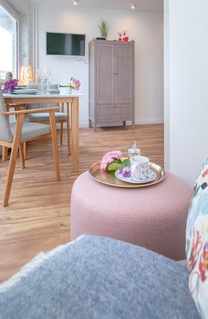 Die Strandsuite Sylt in Westerland bietet modernen Komfort mit kleinem Meerblick nur 58 Schritte vom Strand entfernt.