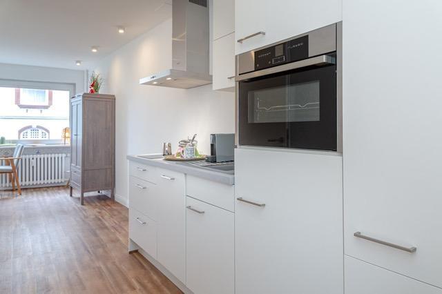 Herzlich willkommen ...... Strandsuite Sylt. Bis zum Strand sind es 58 Schritte, in die Friedrichstraße noch weniger - und zum Bahnhof zehn Minuten zu Fuß. Die 2019 komplett neu eingerichtete Strandsuite bietet eine, wenn nicht die beste Lage in Westerland. Direkt am Ende der Fußgängerzone, und dennoch ruhig gelegen an zwei Strandübergängen (BADEZEIT und Friedrichstraße). Vom gemütlichen Sofa aus, beim Glas Wein am Esstisch und auf dem kleinen West-Balkon sehen Sie die Wellen der Nordsee (kleiner Meerblick). Sie hören das Rauschen der Brandung, das Kreischen der Möwen, in direkter Nachbarschaft zur City. Die lichtdurchflutete Suite bietet auf 21 Quadratmetern alles, was Sie für Ihre Auszeit allein oder zu zweit benötigen. Das hochwertige Nehl-Schrankbett verfügt über eine Taschenfederkern-Matratze in der Komfortgröße 160 x 205 cm. Ihre Unterkunft besteht aus einem kombinierten Wohn-Schlafzimmer, einer voll ausgestatteten Nobilia-Markeneinbauküche und einem Dusch-Bad. Mit ihren modernen Möbeln und viel Liebe zum Detail ist die Strandsuite ein Kleinod für Gäste, denen ein Hotelzimmer zu unflexibel ist. Die Küche ist komplett und hochwertig ausgestattet. Sie haben die Wahl zwischen einer Nespresso- und eine Filterkaffeemaschine. Ceranfeld, Geschirrspüler, Backofen und ein Kühlschrank mit Gefrierfach bieten den Komfort, den Sie von zu Hause kennen. Die meisten Geräte sind von Neff bzw. Bosch. Das mit Villeroy & Boch-Fliesen ausgestattete Bad bietet Ihnen auf kleinem Raum (ca. 3 m²) Dusche, WC, Waschbecken und Handtuch-Heizung. Ein durchdachtes Lichtkonzept mit mehreren Dimmern sowie Designer-Leuchten sorgen für wohlige Beleuchtung im Wohn-Schlafzimmer und im Bad. Technisch befindet sich die Suite auf dem neuesten Stand. Sie erwartet ein 43"-Fernseher mit Netflix und Kabelanschluss, kostenloses W-LAN und ein hochwertiger Bluetooth-Lautsprecher von Bose. Die Strandsuite befindet sich im 1. Stock eines vierstöckigen gepflegten Apartmenthauses und ist per Treppe und Fahrstuhl erreichbar. Waschmaschine und Trockner sind im Keller (Münzautomat), direkt vor dem Haus befindet sich ein Fahrradständer. Falls Sie mit Ihrem Auto anreisen – ein öffentlicher Parkplatz ist nur wenige Fußminuten entfernt. Aus Rücksicht auf andere Gäste: keine Raucher, keine Tiere, keine Ausnahme.