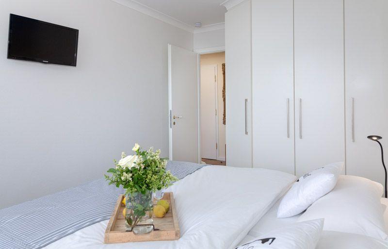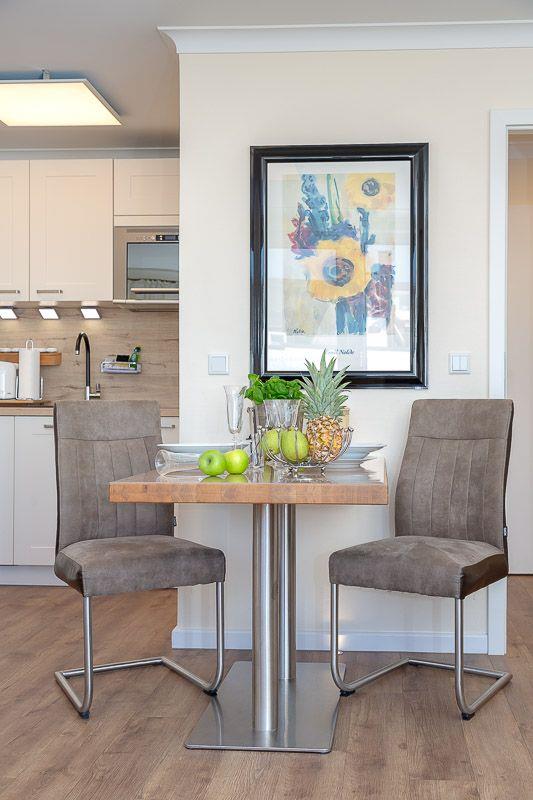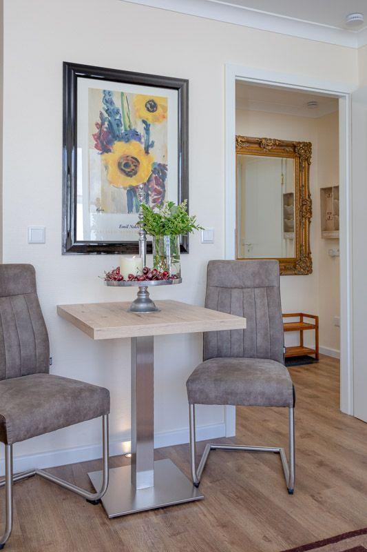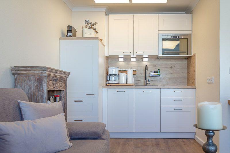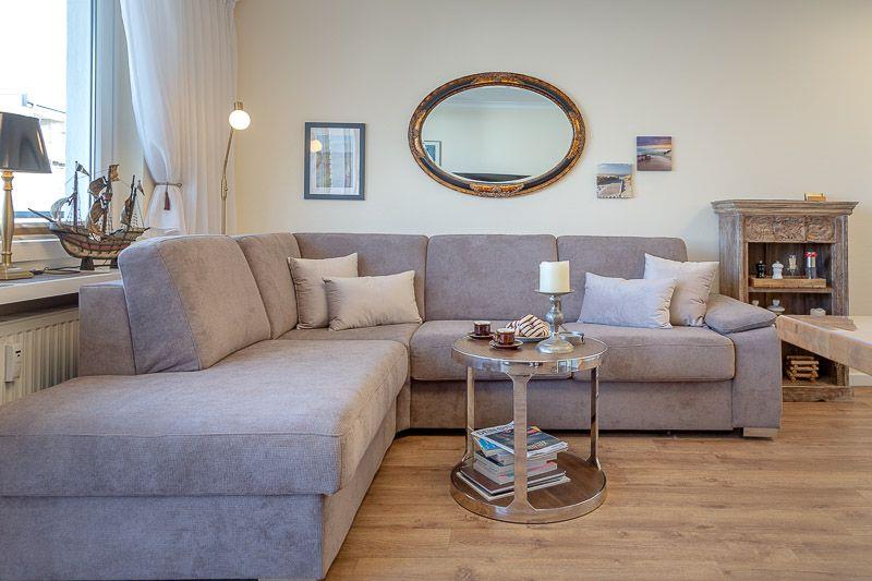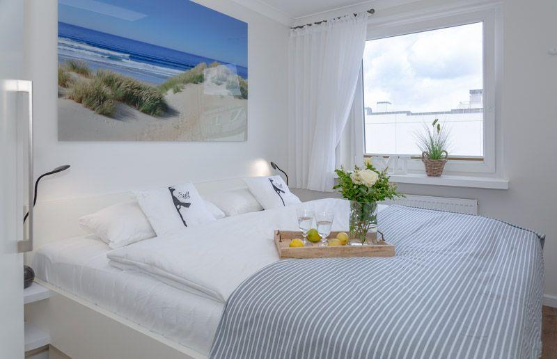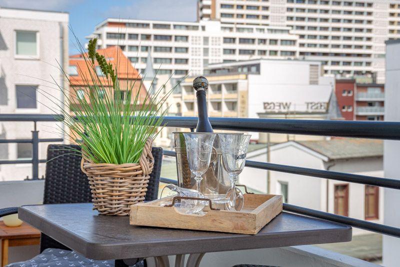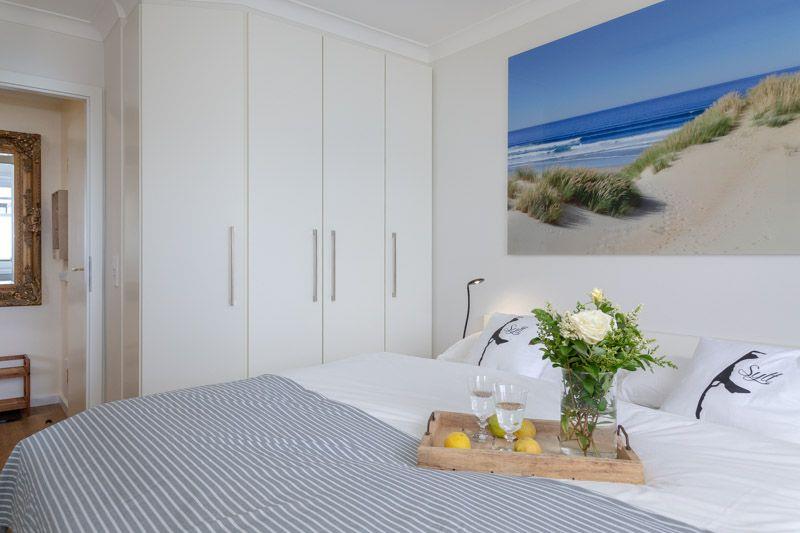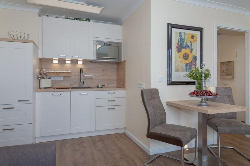 Westerland, Elisabethstraße, Haus Dünenburg - 50 Schritte bis zur Friedrichstraße, Fahrstuhl von Garagenebene bis App., Balkon mit Blick über die Dächer der Innenstadt, Einzelgarage mit elektrischem Torantrieb, Internet/50 Mbit. In 2019 komplett saniert und geschmackvoll eingerichtet. Die moderne 2-Zi.-Wohnung in bester Lage von Westerland mit kurzfristiger Erreichbarkeit von Strand und City bietet komfortablen Platz für 2 Personen. Das App. befindet sich in der 4. Etage des Appartementhauses Dünenburg in der Elisabethstr. 9. Auf insgesamt 36 qm finden Sie hier allen Komfort für einen schönen Urlaub. Die topmoderne, komplett ausgestattete Nolte-Küche bietet alles für den gehobenen Anspruch. Neben ausreichend Gläsern und Geschirr erledigt die kleine Geschirrspülmaschine den Abwasch (Tabs sind mitzubringen). Die Küchentischplatte ist neu und aus cm-dicker Eiche und bietet großzügig Fläche zum Essen und Arbeiten. Das neue, gemütliche Eck-Loungesofa bietet genügend Platz für Muße & Entschleunigung. Des weiteren bietet es, als Option neben dem Schlafzimmer, eine einfach ausklappbare Schlaffläche mit einer 130cm breiten, vollwertigen Matratze, so dass die 2. Person sich ggf. nachts separieren kann und Sie sich nicht gegenseitig durch Schlafgeräusche stören. Neben dem 65 Zoll Smart TV ist freies WLAN für Gäste in dieser Wohnung selbstverständlich. Ebenso wie eine Netzwerksteckdose für alle Kabelkinder. Der nach Nord/Osten ausgerichtete Balkon (Garten/Balkonmöbel vorhanden) bietet sich im Sommer mit Morgensonne zum Frühstücken an. Im Schlafzimmer befinden sich ein gemütliches Doppelbett (2 Matratzen á 90 x 200cm) sowie ein weiterer TV. Bad mit fast bodentiefer Dusche. Föhn, Safe und Stauraum sind vorhanden. Auch bei Regen bleiben Sie trocken, da Sie direkt aus der Garage ins Treppenhaus gelangen. Gepäck und Einkäufe haben so kurze Wege. Sie erreichen das App. sowohl über das Treppenhaus als auch über den ebenerdigen Fahrstuhl, der Sie innerhalb des Hauses von der Garagen-/Eingangsebene zur Whg. (4.OG-ohne Übermieter) bringt. Die private Garage erlaubt es Ihnen, ihr Fahrzeug über die Zeit stehen lassen zu können, ohne sich Sorgen um die Sicherheit und zusätzliche Parkgebühren machen zu müssen. Waschmaschine, Trockner mit Münzeinwurf sowie ein Trockenraum stehen im Keller zur Verfügung. Das kleine aber feine App. ist optimal in Platz und Raum, hat eine gute Energie und ist ideal für Urlauber, die ruhig, aber trotzdem super-zentral Wohnen möchten, Wirtschafts- u. Geschäftsreisende und Kongressteilnehmer. City, Geschäfte, Strand und die Vermietungsagentur erreichen Sie in 3 Gehminuten. Bei Buchung ab 10 Tagen ist die Leihwäsche inklusiv. Nichtraucherwohnung - Tierhaltung ist nicht erlaubt!
