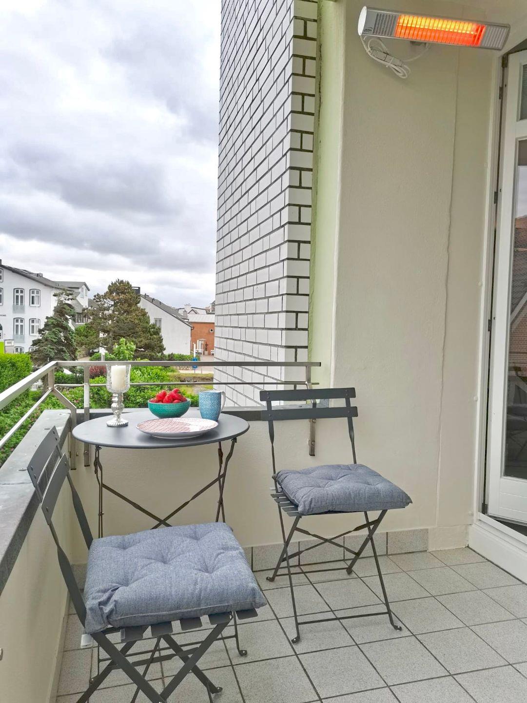 Moderne Strandwohnung mit Balkon und Strandkorb