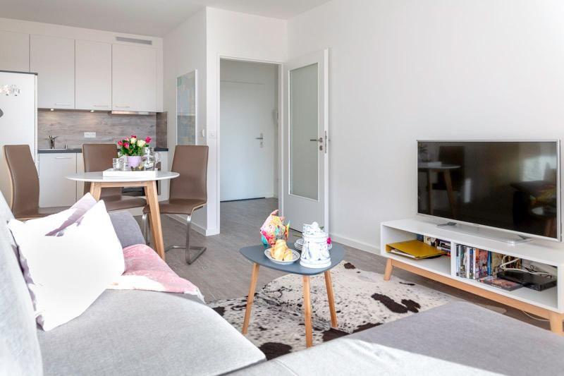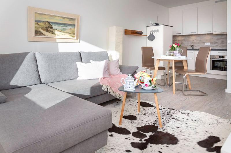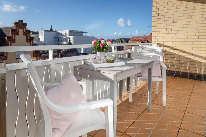 Renovierte 2 Zimmerwohnung, in bester zentraler Lage von Westerland, nur wenige Meter vom Hauptstrand entfernt. Modern, hell und freundlich erscheint dieses Appartement, welches nach Süden ausgerichtet ist. Hier haben Sie in den Sommermonaten fast ganztägige Sonne auf dem Balkon, sowie einen schönen Blick zur Nordsee. Das Wohnzimmer mit der offenen Küchenzeile ist ausgestattet mit einem Schlafsofa für 2 Personen (Liegefläche 140x200), kleinem TV Board, Smart-TV, Couchtisch sowie einem Essplatz mit 4 Stühlen. Die Küche ist hervorragend ausgestattet: Eine Mikrowellen-Backkombination, ein Geschirrspüler und ein Herd mit 4 Platten Ceranfeld gehören zur Ausstattung. Ebenso eine Kaffeemaschine, Toaster und eine Nespresso© Kapsel Maschine. Bad mit geräumiger Eckdusche, WC und Waschbecken. Ausreichend Abstellfläche für Kosmetik und persönliche Dinge ist vorhanden. Besonders hervorzuheben ist, dass die Wohnung einen eigenen Wasch-Trockenautomaten hat. Das separate Schlafzimmer verfügt über einen Kleiderschrank und ein Doppelbett (2x90x200) mit Stauraumschubladen. Die großen Fensterfronten im Schlaf- wie im Wohnzimmer lassen viel Licht in die Räume. Einen Zugang zum Südbalkon mit 4 Stühlen, Auflagen und einem Tisch gibt es vom Wohnzimmer aus. Der zur Wohnung zugehörige Garagenplatz Nr. 43, sowie das WLAN mit einer Geschwindigkeit von 50 Mbit mit unlimitiertem Volumen (Zugangsdaten liegen in der Wohnung) können kostenfrei genutzt werden. Diese Nichtraucherwohnung hat eine Größe von ca. 48 m². Die Wohnung ist bestens geeignet für 2-3 Personen. Die Preise beziehen sich auf eine Belegung mit 2 Personen (weitere Pers. je 10,-/ Tg).