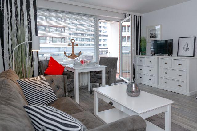 Modernes 1-Zimmer-Appartement mit Balkon, nur 150 m vom Strand in Westerland entfernt.