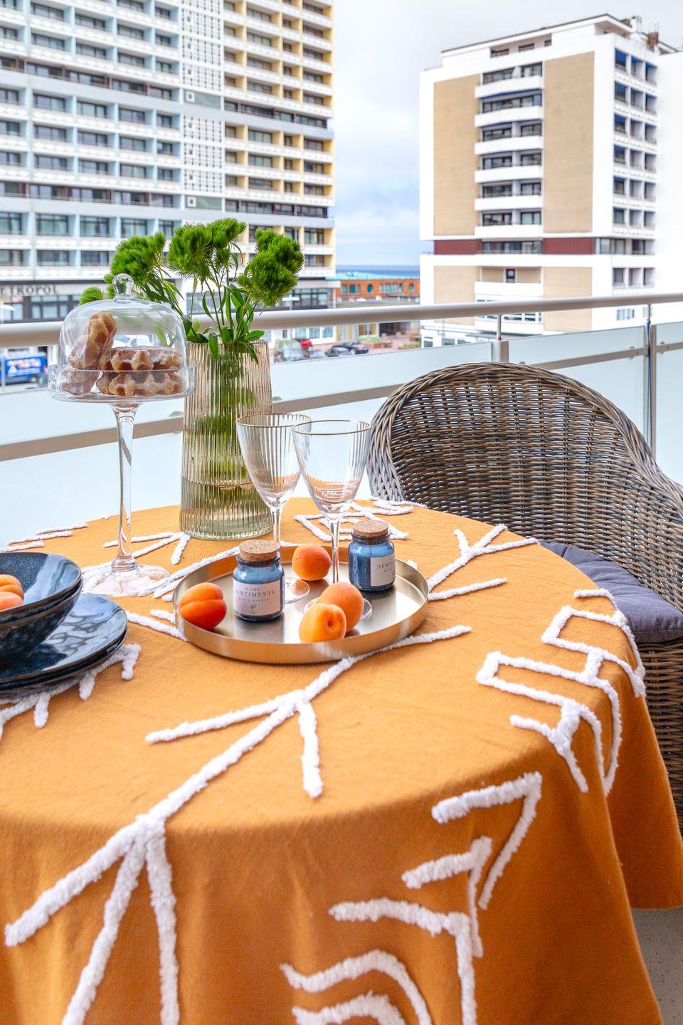 Zusätzlich haben Sie Zugang zu einem Balkon, der Ihnen die Möglichkeit bietet, die frische Nordseeluft un d den kleinen Meerblick zu genießen und vielleicht bei einem Glas Wein den Sonnenuntergang zu beobachten.