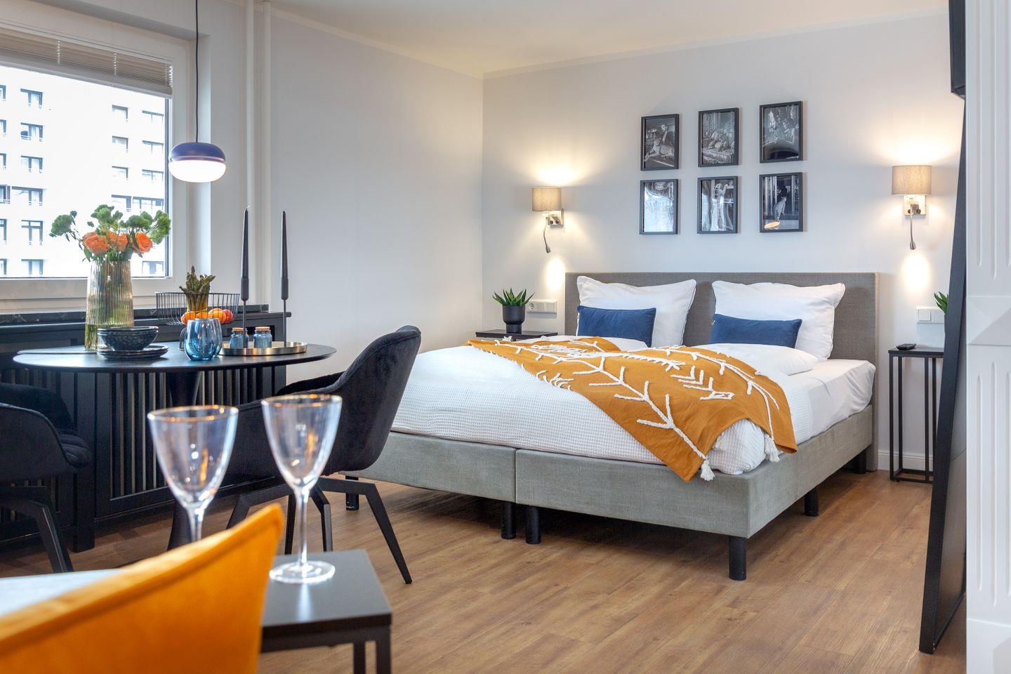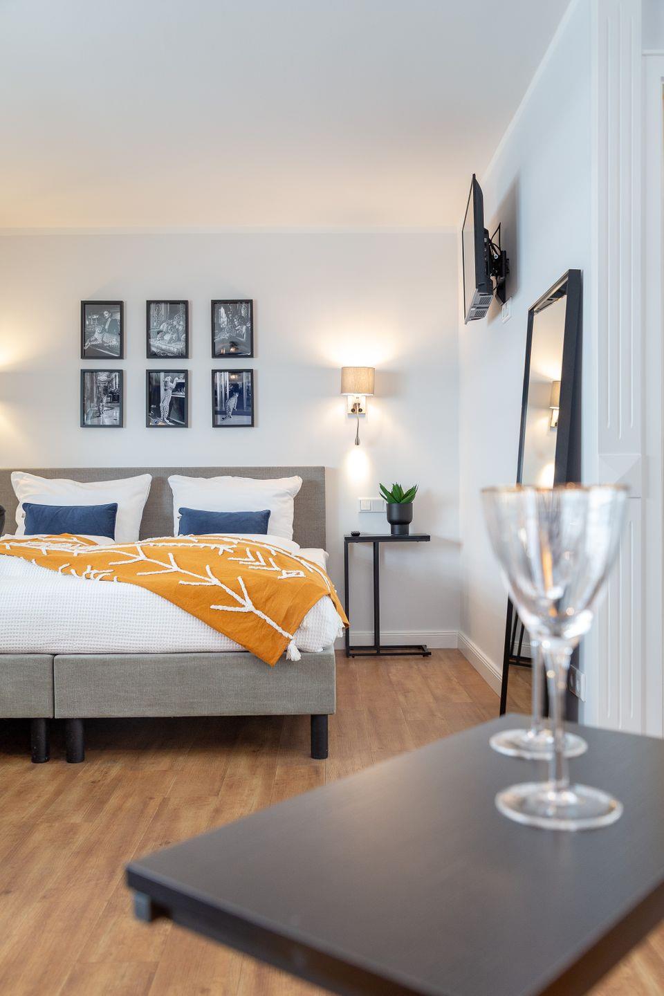 komfortables Bett (160x200), das Ihnen eine erholsame Nachtruhe garantiert. Das moderne Badezimmer ist mit einer Dusche ausgestattet und sorgt für zusätzlichen Komfort während Ihres Aufenthalts.