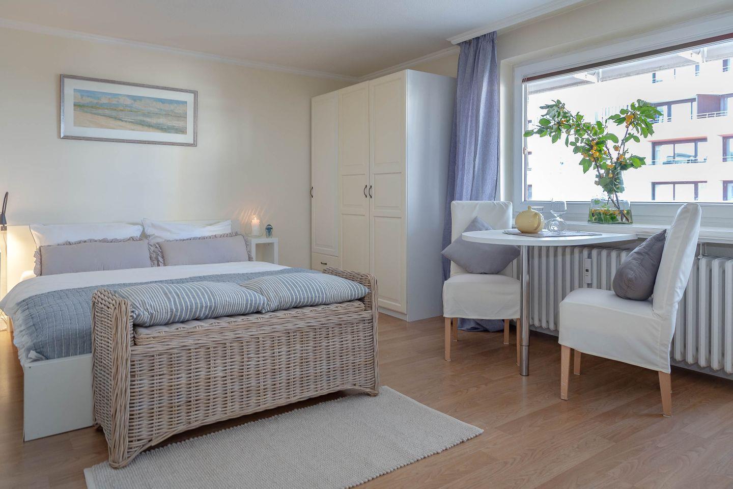 Gemütliches 1-Zimmer-Appartement mit Balkon und Meerblick in Westerland, nur 100 m vom Strand und Zentrum entfernt.