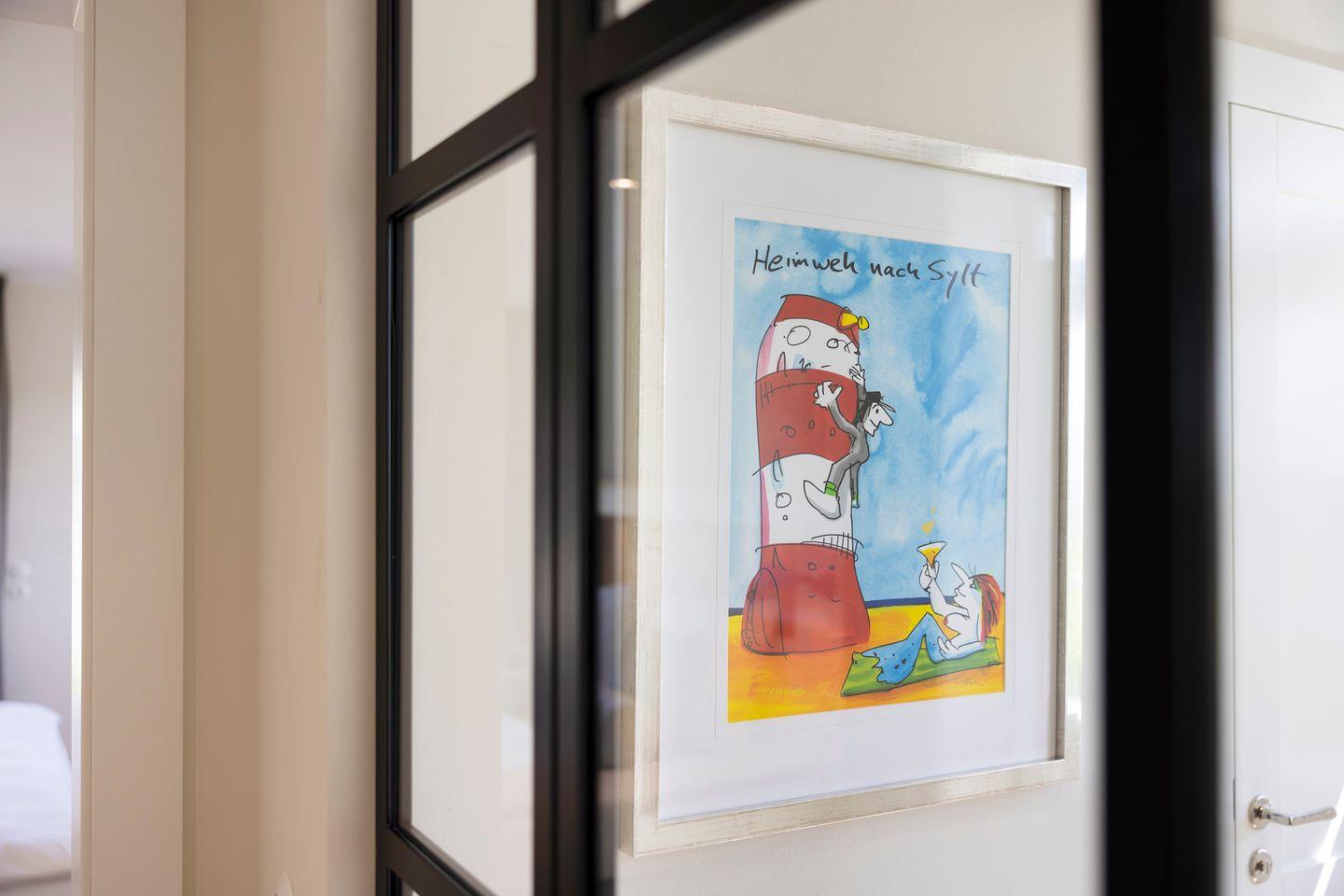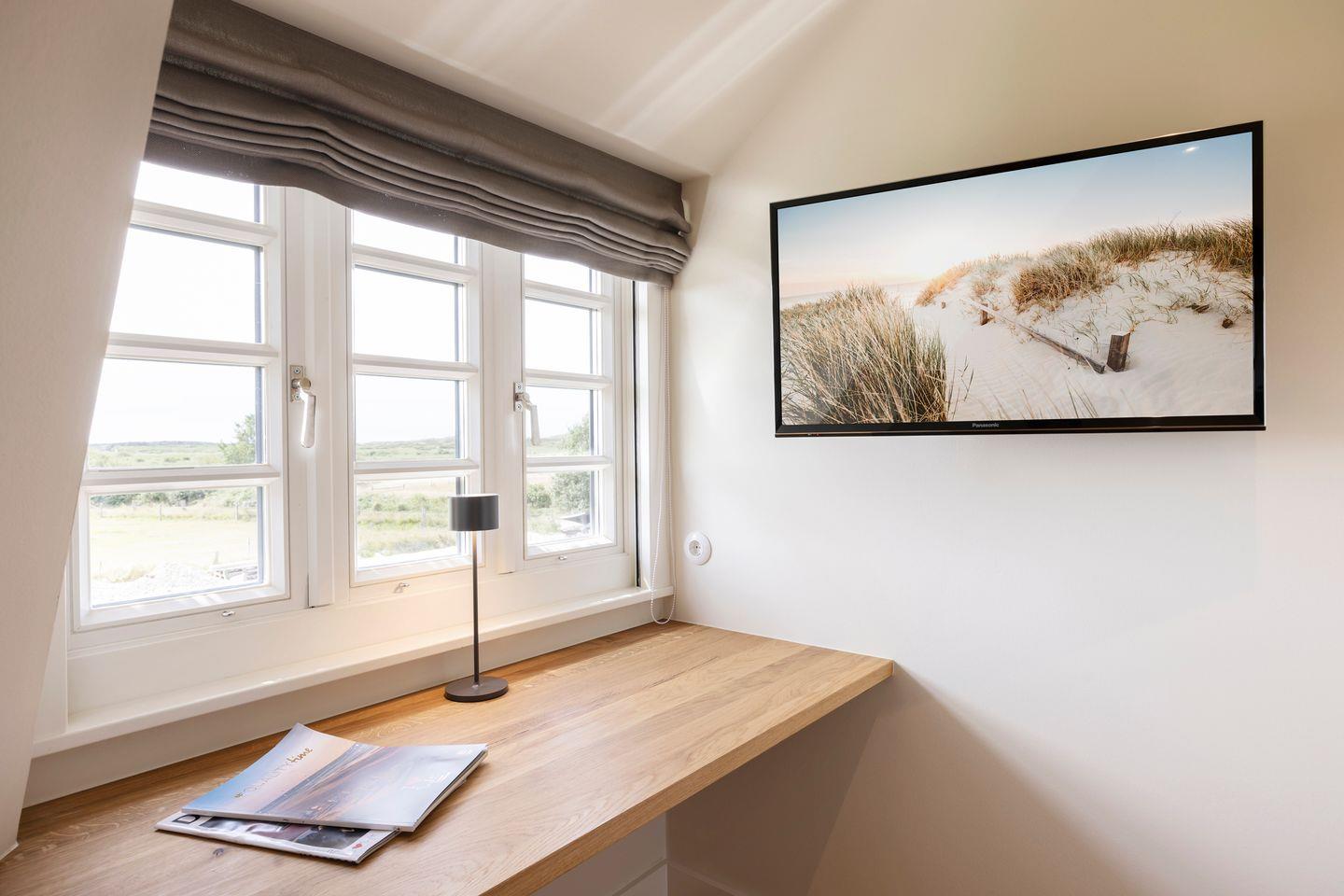 Ein besonderes Highlight des Hauses ist die im Obergeschoss integrierte finnische Sauna, die einen atemberaubenden Blick über die Sylter Wiesen bis nach Rantum bietet. Hier können Sie nach einem langen Tag am Strand die Seele baumeln lassen und wohltuende Wärme genießen.