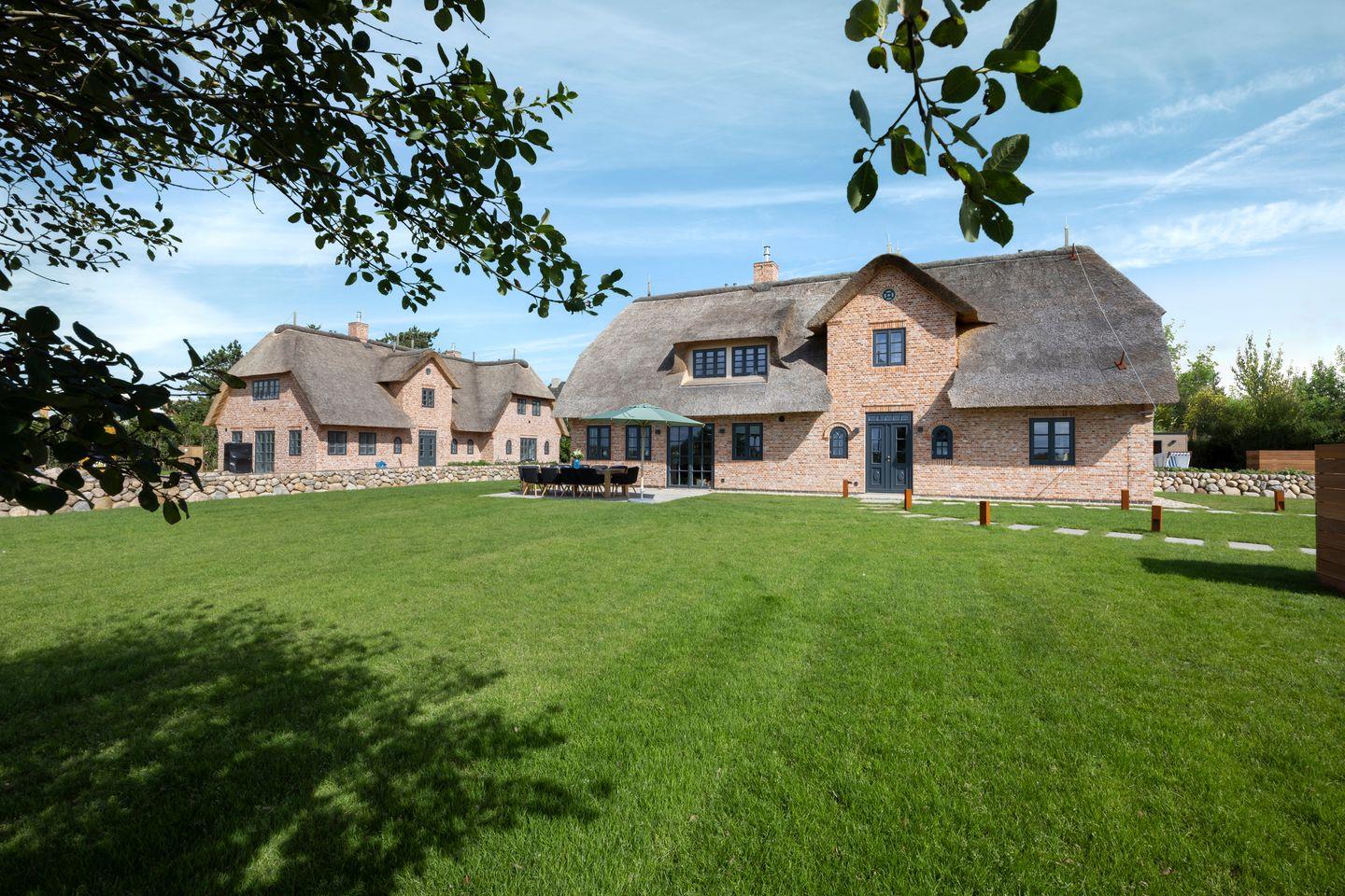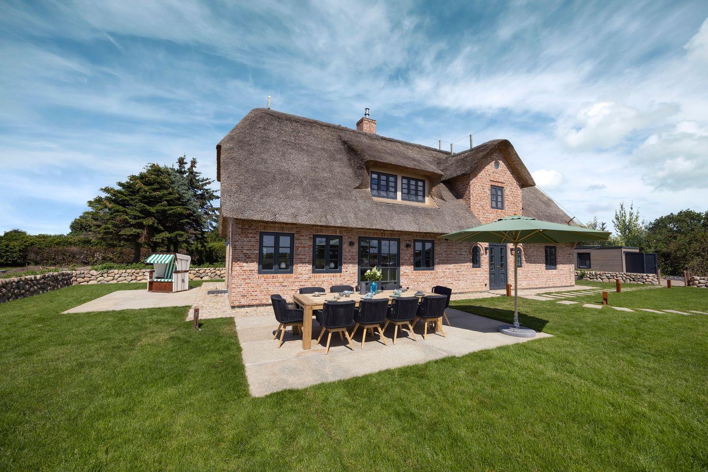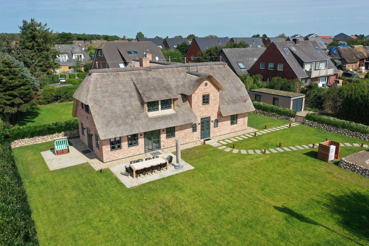 Luxuriöses Reetdachhaus in Westerland mit Sauna, Garten und moderner Ausstattung, nur 300 m vom Strand entfernt.