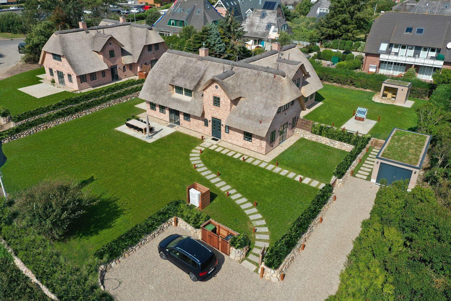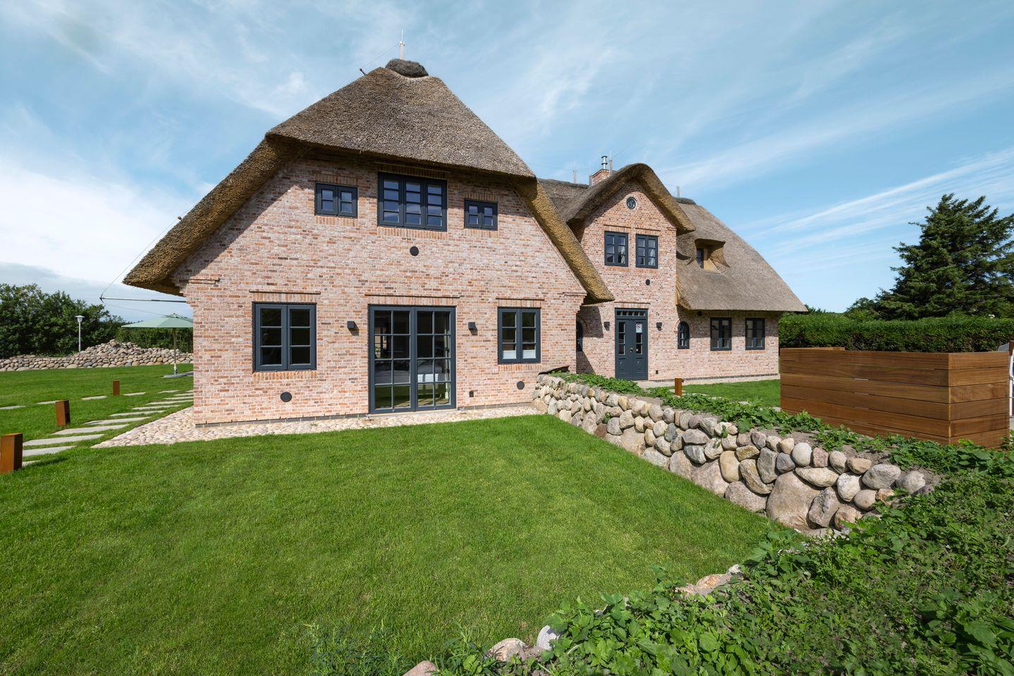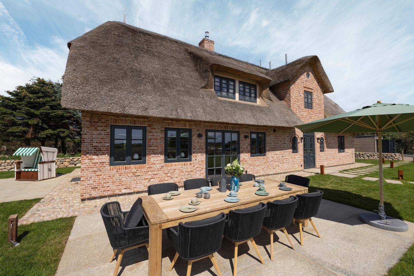 Luxuriöses Reetdachhaus in Westerland mit Sauna, Garten und moderner Ausstattung, nur 300 m vom Strand entfernt.
