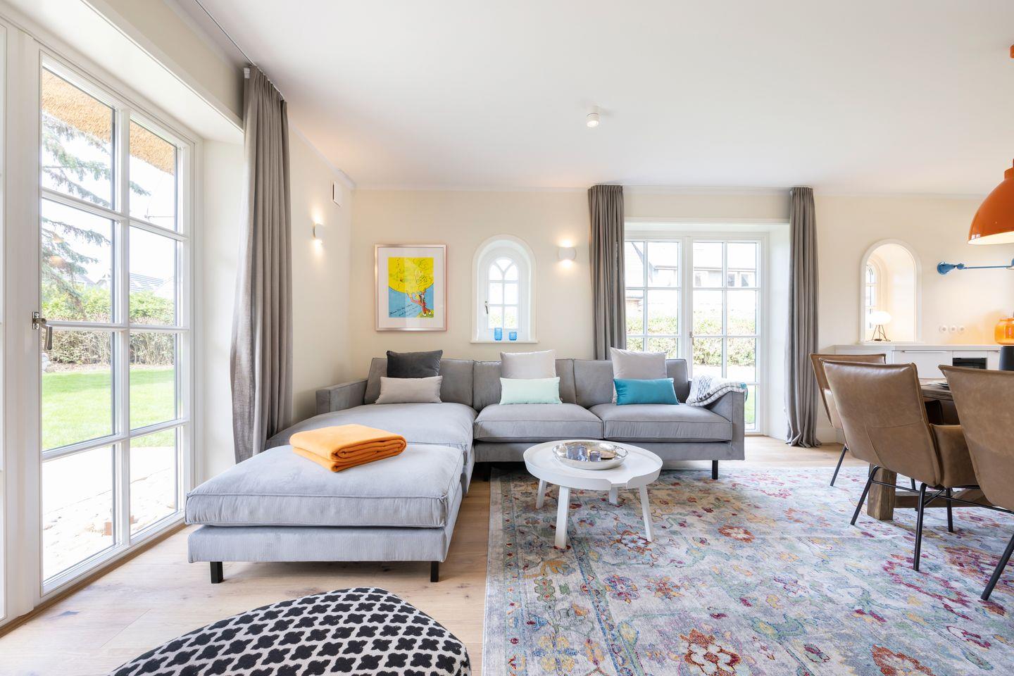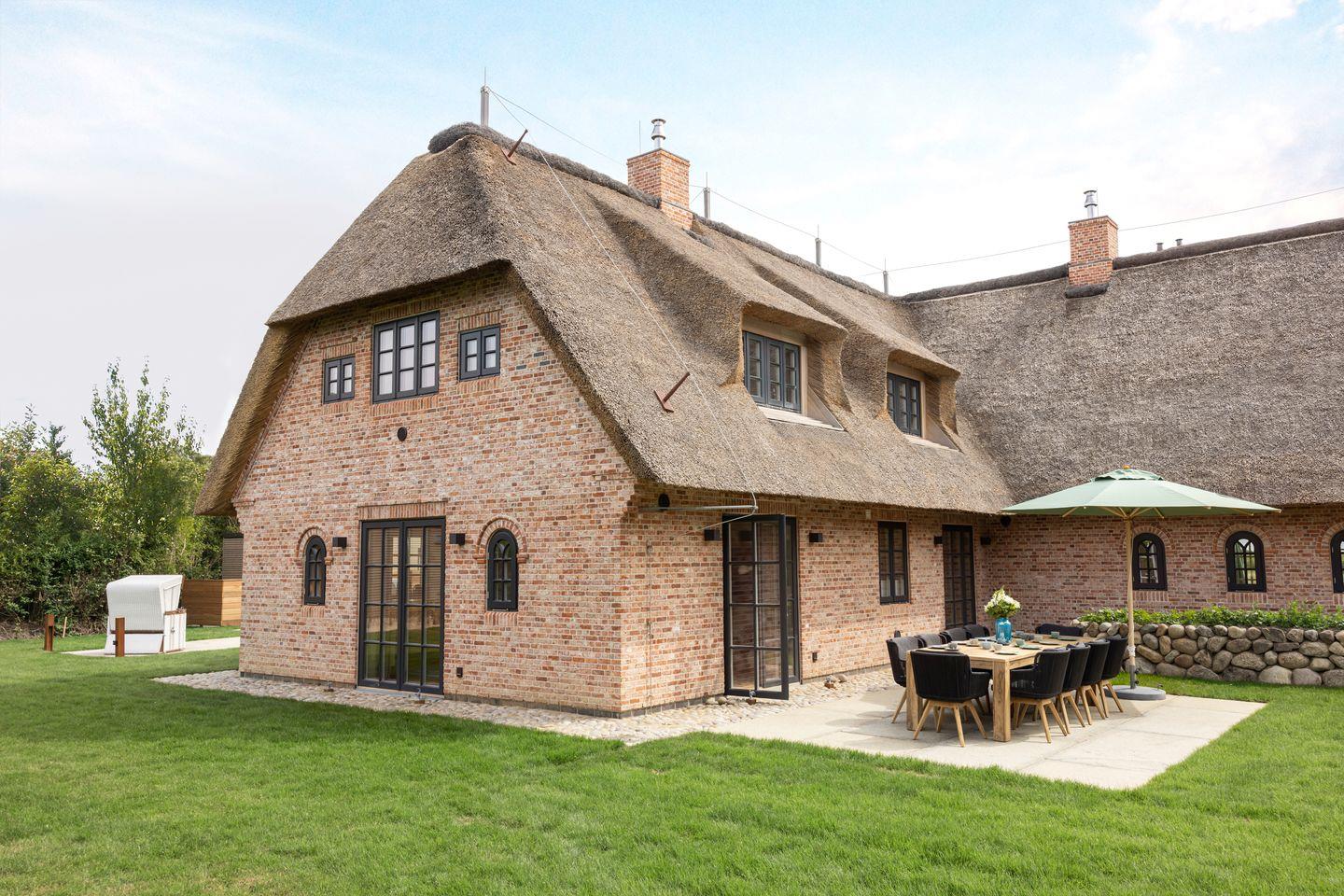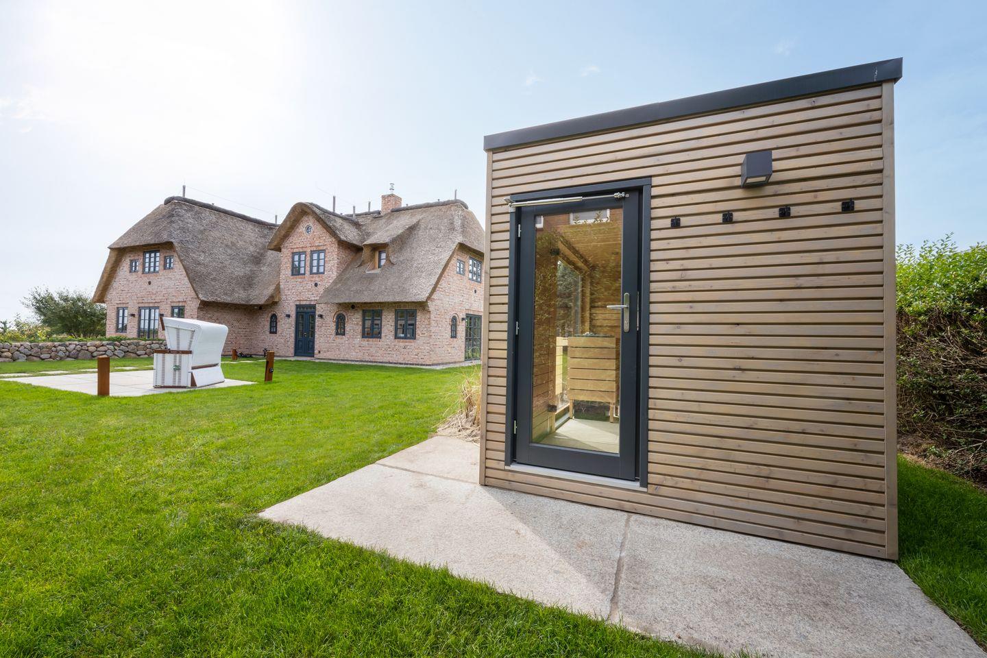 Luxuriöses Doppelhaus unter Reet in Westerland mit Sauna, Garten und modernem Komfort für erholsame Urlaubstage.
