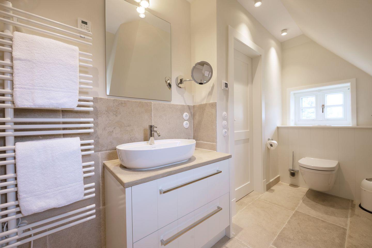 Der Eingangsbereich verfügt über ein zusätzliches Gäste-WC. Im Hauswirtschaftsraum befinden sich eine Waschmaschine und ein Trockner. WLAN ist im gesamten Haus und im Garten (ohne Gewähr) verfügbar.