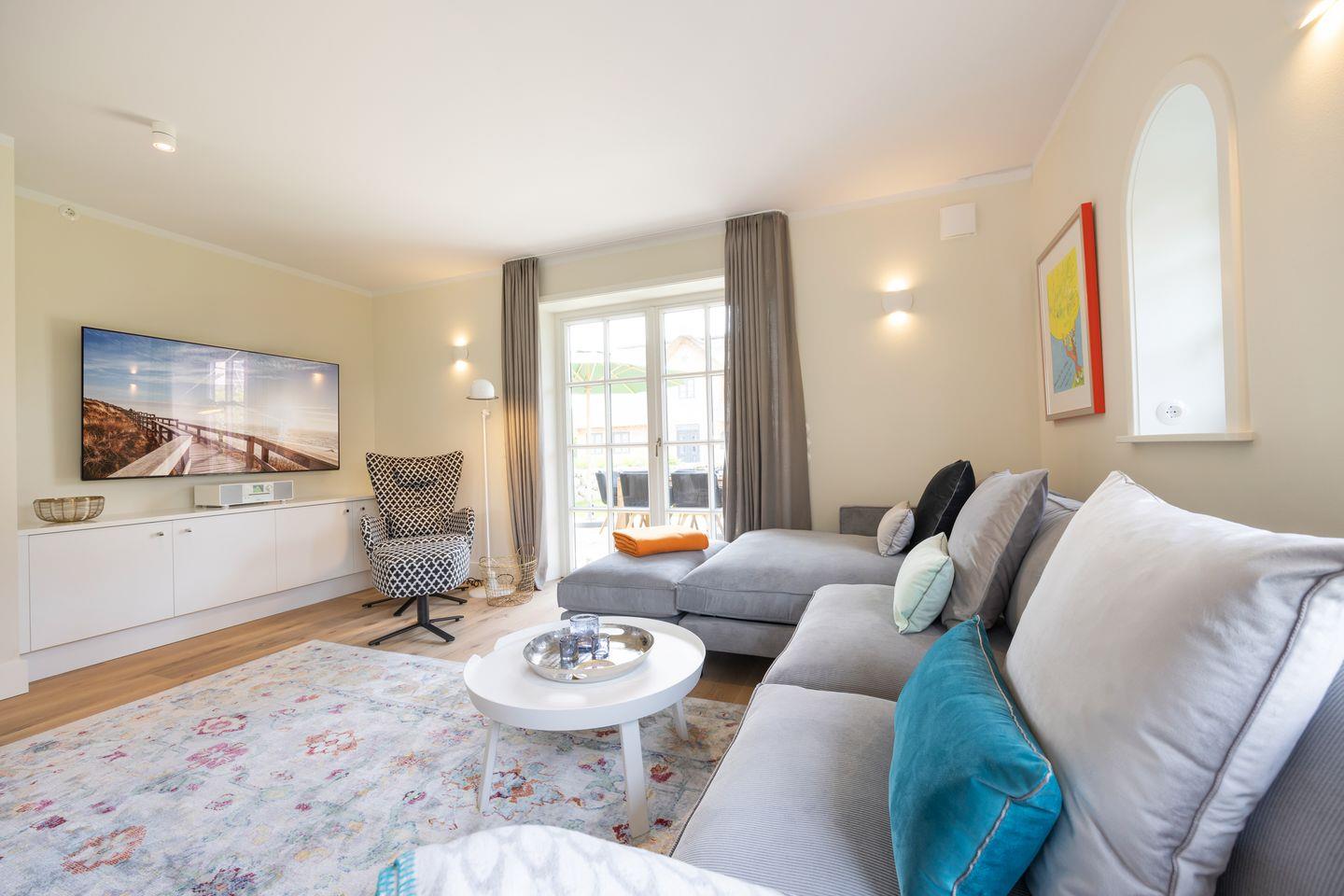 Ein besonderes Highlight ist die Außensauna im Garten, die nach einem langen Strandtag oder für die kalte Jahreszeit optimale Erholung bietet. Ein PKW-Stellplatz mit E-Ladestation und Abstellmöglichkeiten für Fahrräder sind direkt am Haus vorhanden.