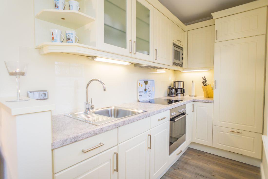 In der neuen Küchenzeile befindet sich u. a. ein 4er Ceranfeld, eine Spülmaschine, ein Backofen und eine Microwelle mit eingebautem Grill.