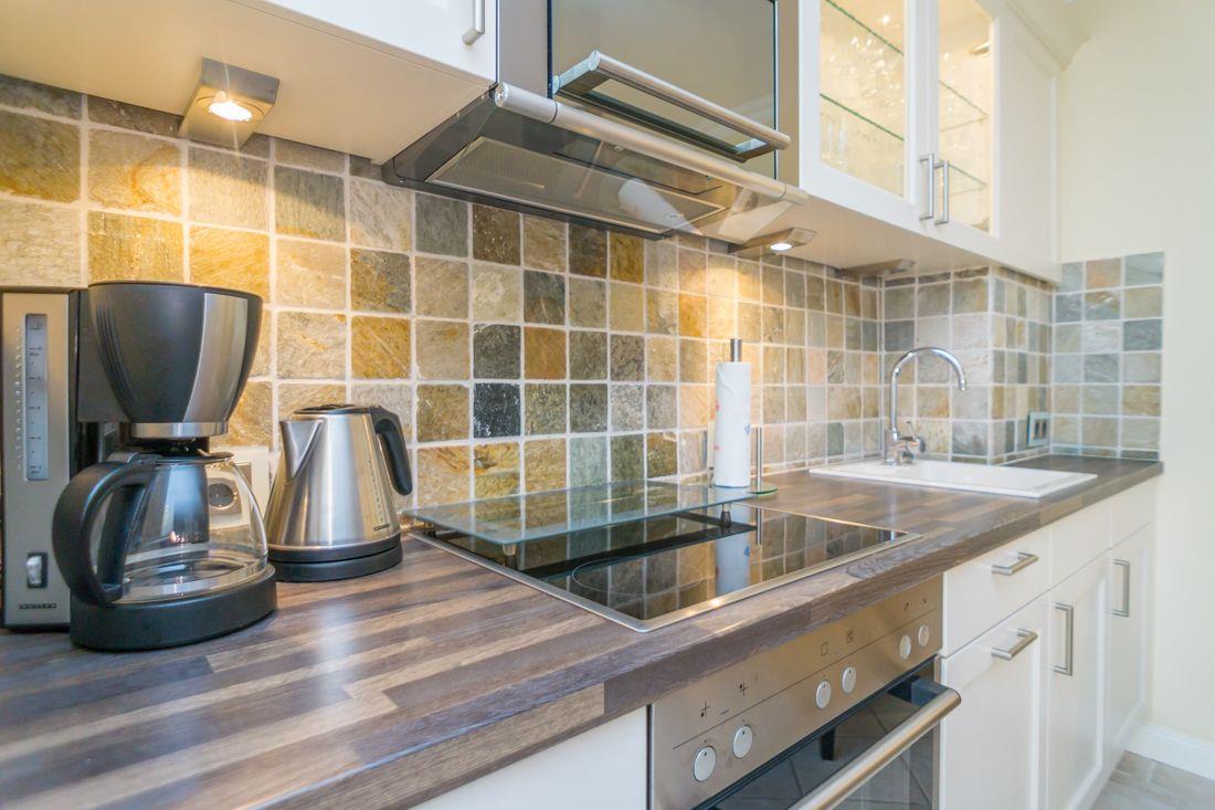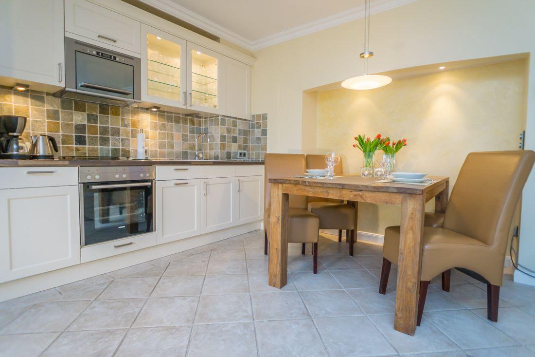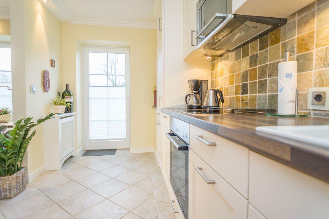 Küchenzeile verfügt u.a. über ein 4er Ceranfeld, eine Spülmaschine, ein Backofen und eine Microwelle mit eingebautem Grill.