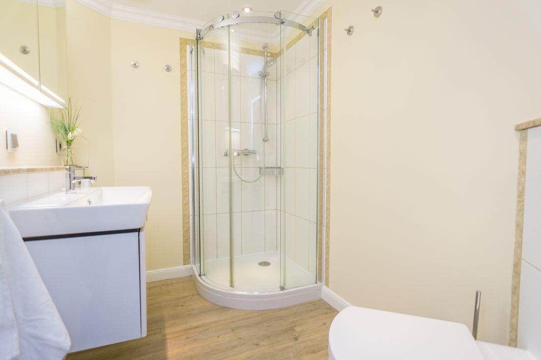 Bad mit Dusche, WC.