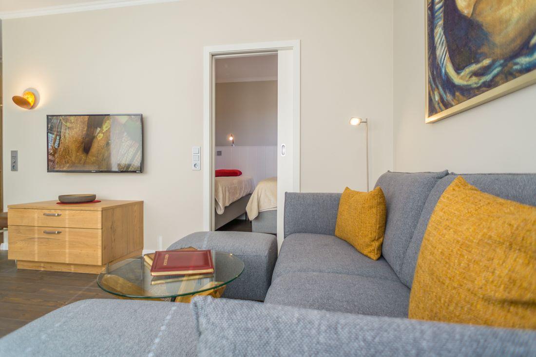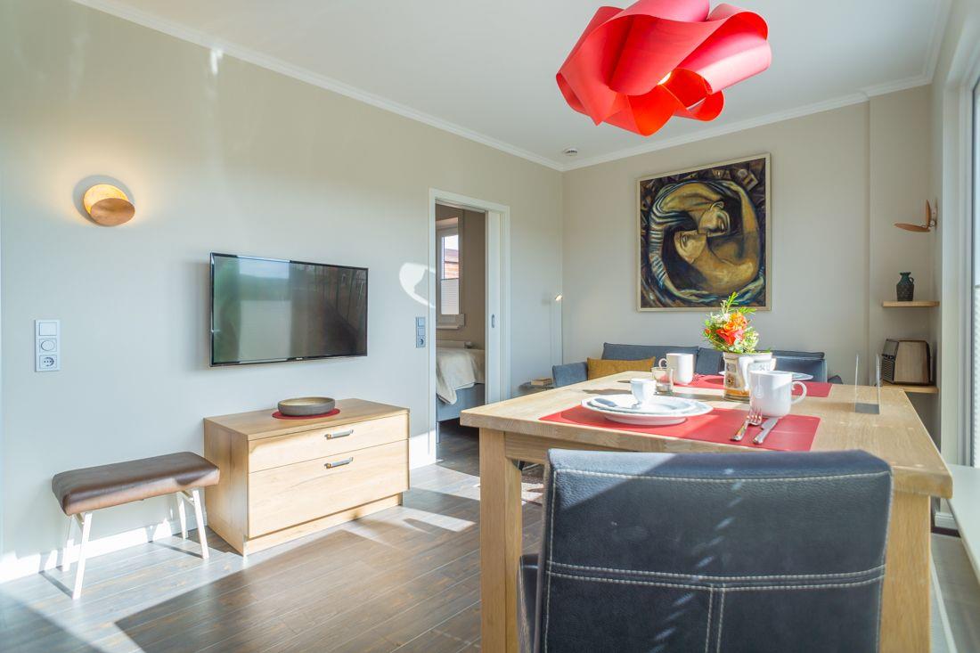 Geschmackvoll eingerichtete Wohn- und Essbereich ist mit LCD TV ausgestattet.