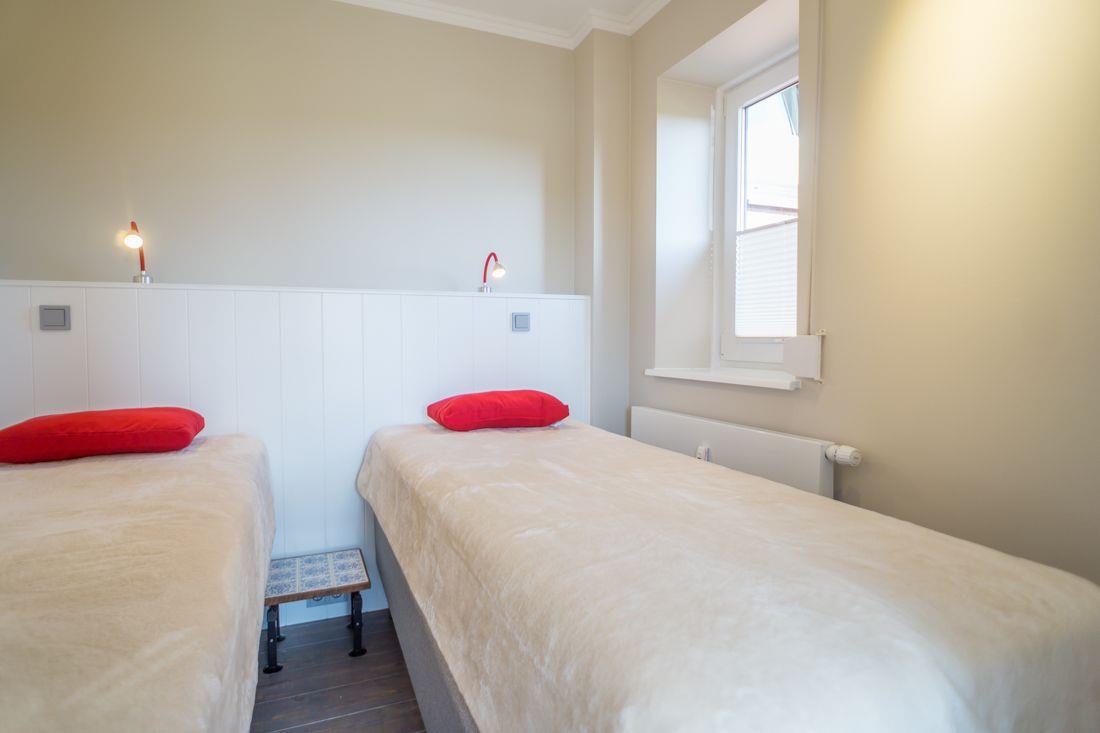 Ein gemütliches Schlafzimmer eingerichtet mit Boxspringbetten (80x200) und LCD TV.