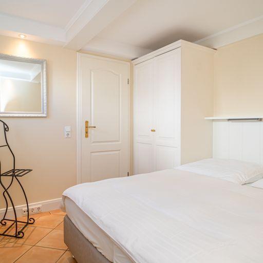 Ein Schlafzimmer eingerichtet mit einem Doppelbett ( Boxspringbett).