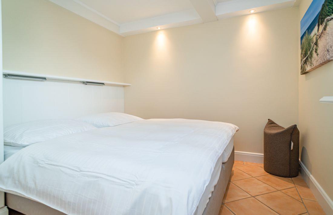 Ein Schlafzimmer eingerichtet mit einem Doppelbett ( Boxspringbett) und LCD Flat TV.