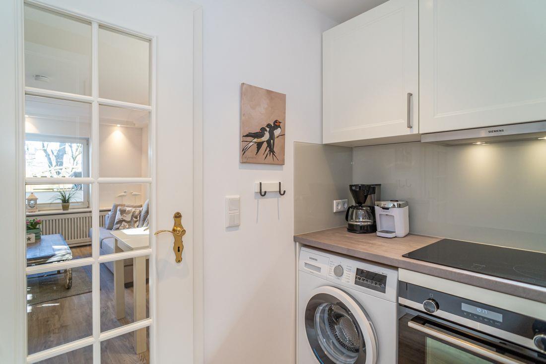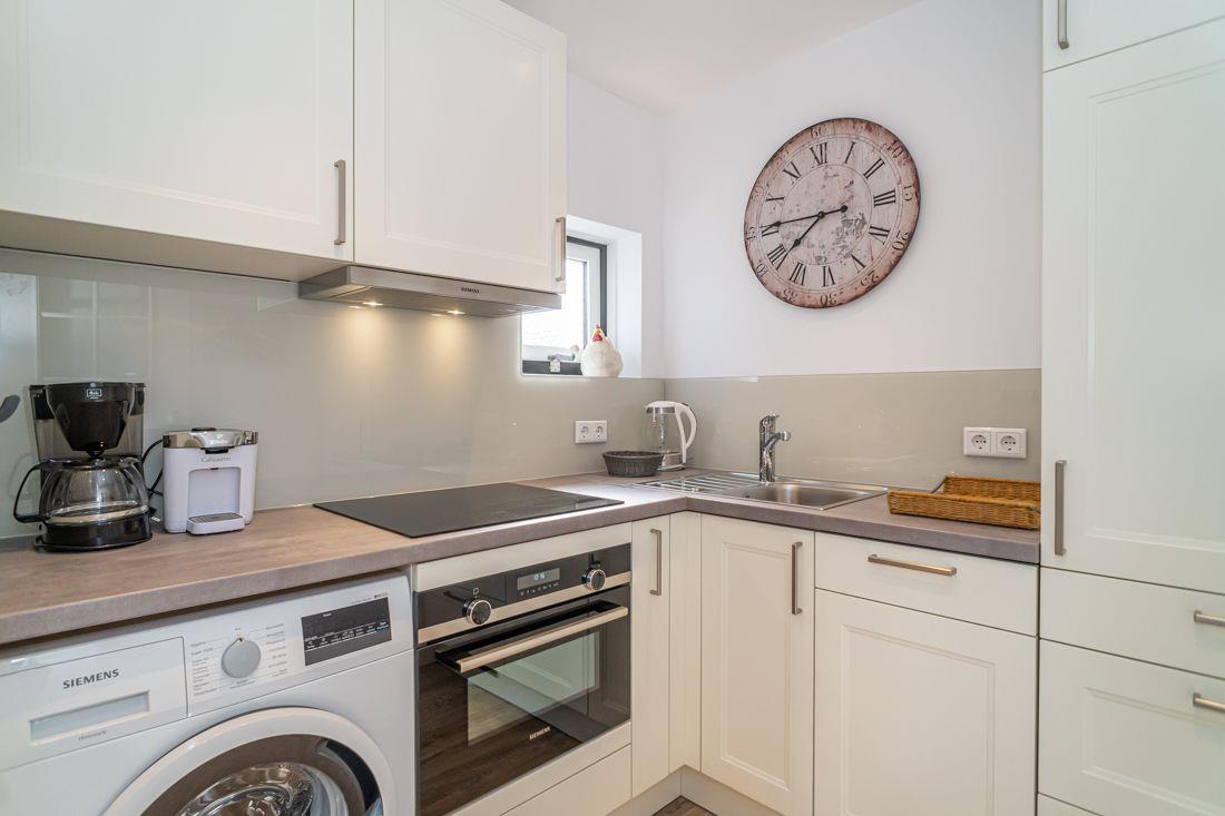 Moderne Küche verfügt u.a. über 4er Cerankochfeld ,Spülmaschine, Mikrowelle, Backofen und Waschmaschine.