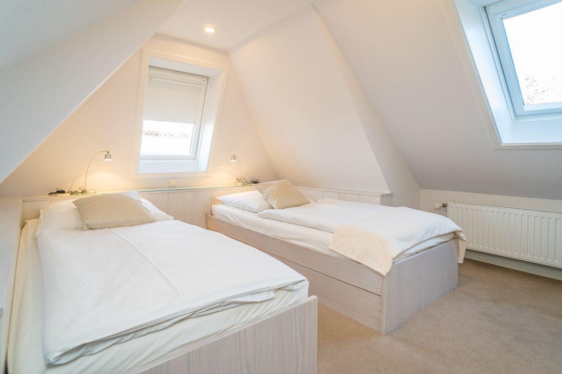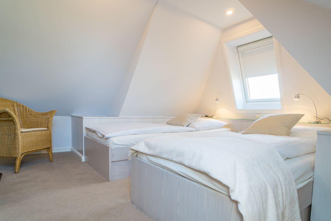 Das Schlafzimmer ist mit zwei Einzelbetten eingerichtet.