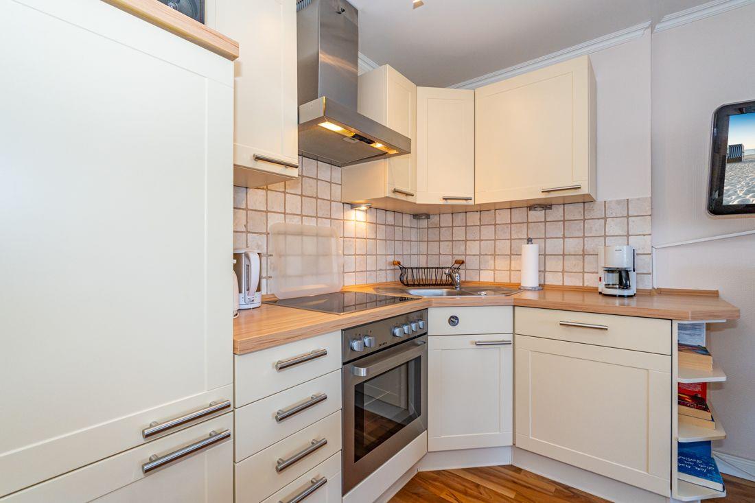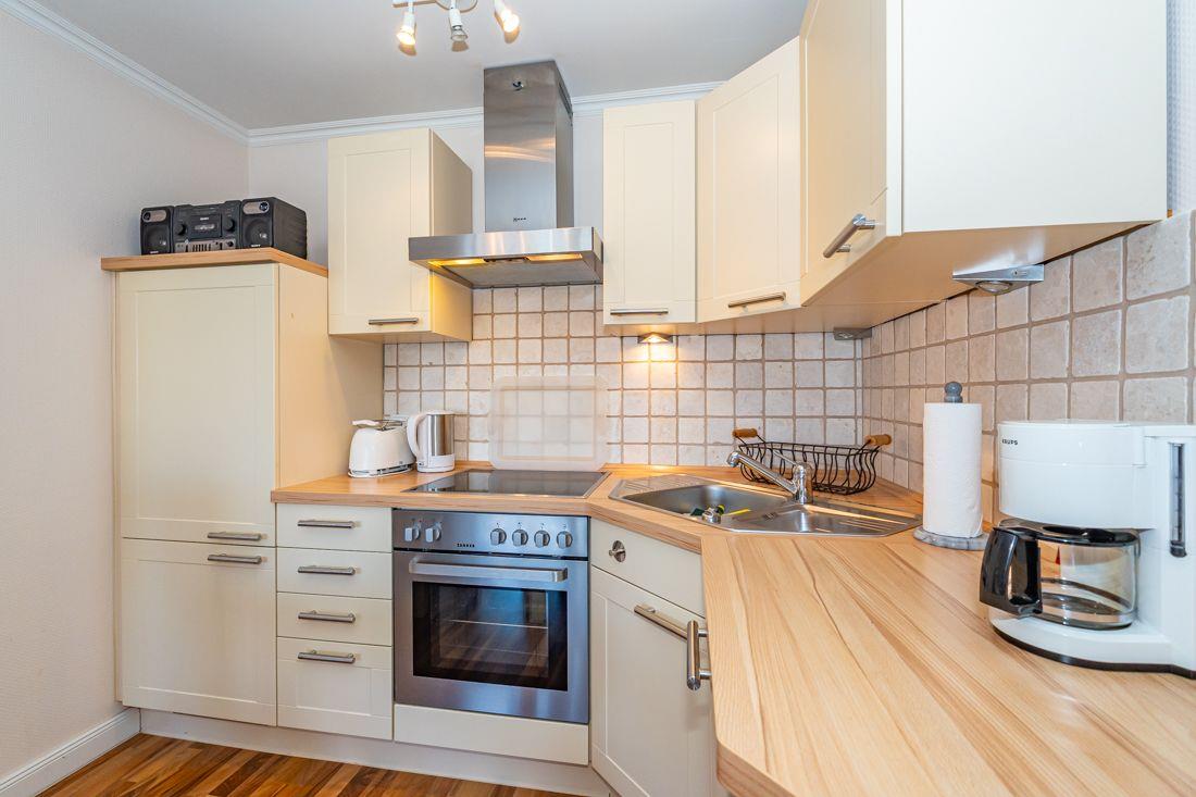 Moderne Küchenzeile verfügt u. a. über ein 4er Ceranfeld, Backofen und Geschirrspüler.