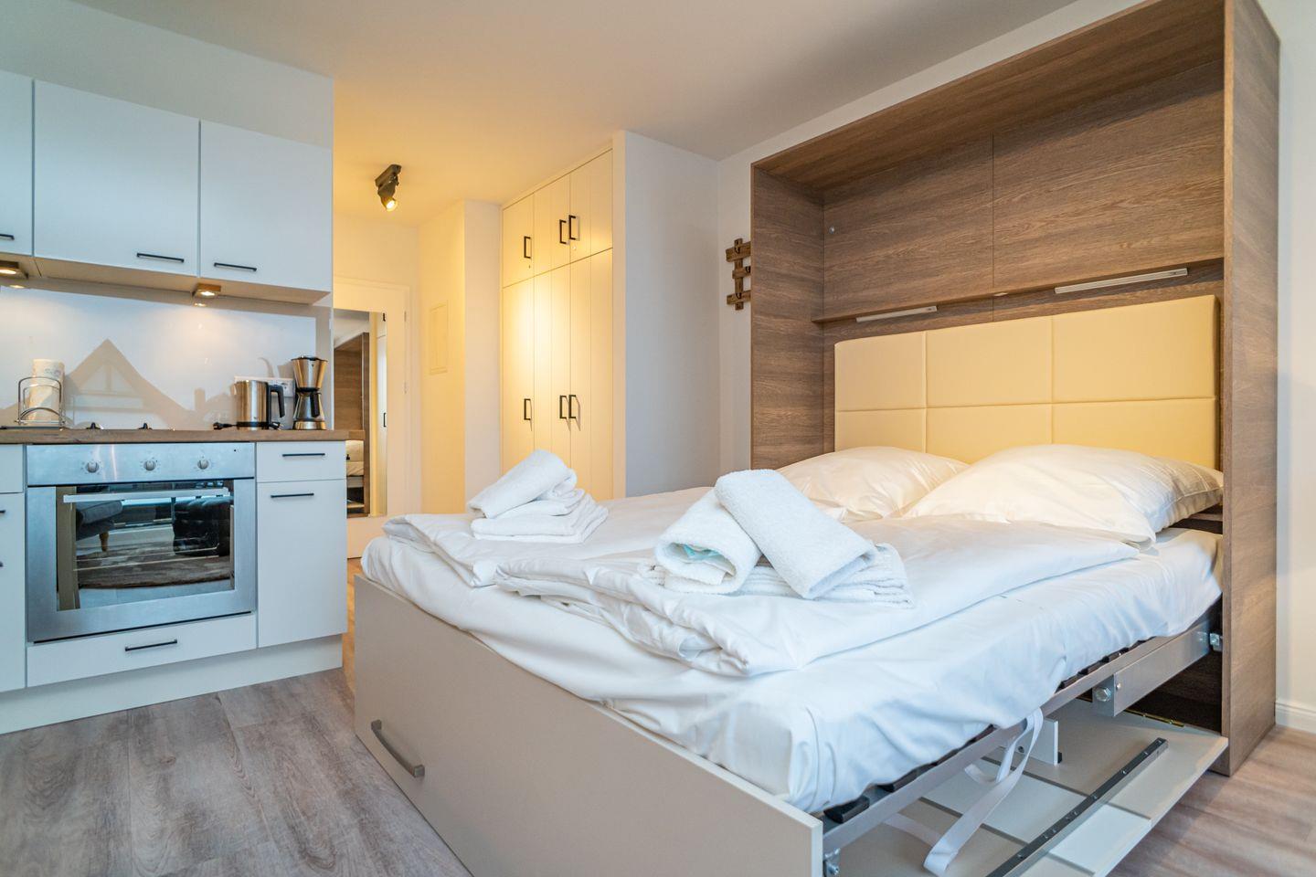 Diese gemütliche Ferienwohnung bietet Platz für bis zu zwei Personen und verfügt über einen modernen Wohn- und Schlafbereich mit offener Küche, einen Balkon zum Entspannen sowie ein Badezimmer mit Dusche. Ein PKW Stellplatz steht Ihnen am Haus zur Verfügung.