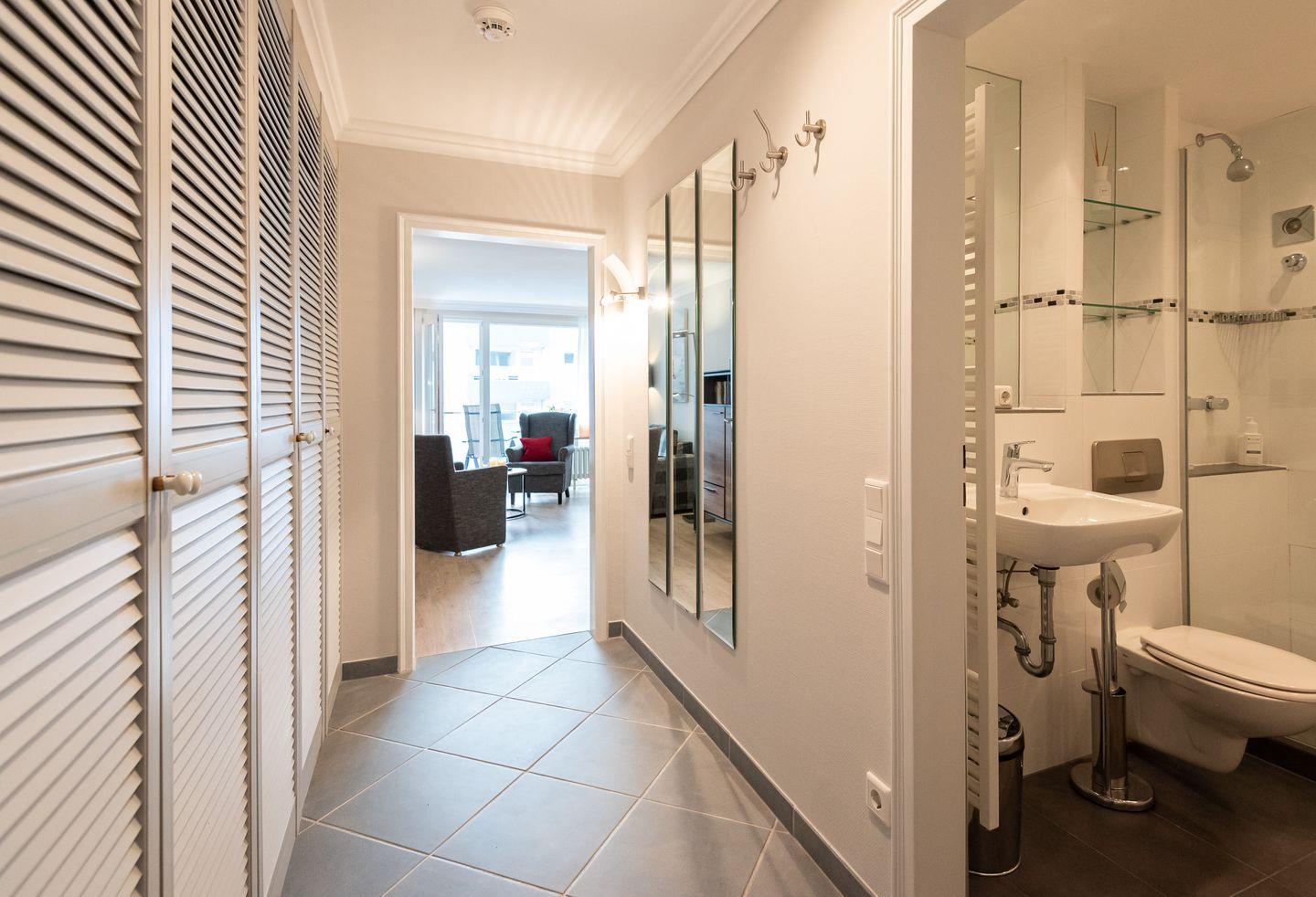 Diese moderne 2-Zimmerwohnung befindet sich im 3. Stock eines Appartementhauses im Stadtzentrum von Westerland. In unmittelbarer Nähe befinden sich Restaurants, Einkaufsmöglichkeiten, die Promenade von Westerland sowie der Strand.