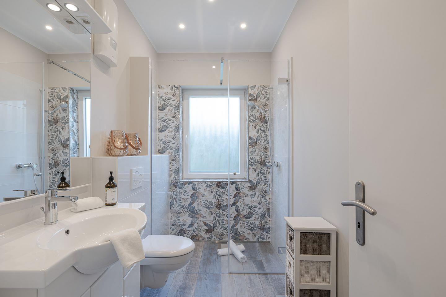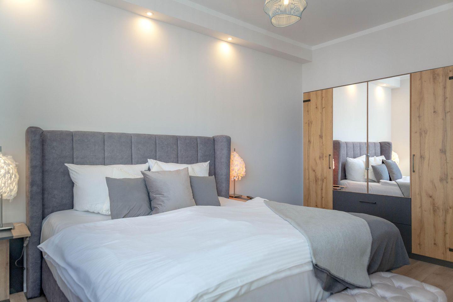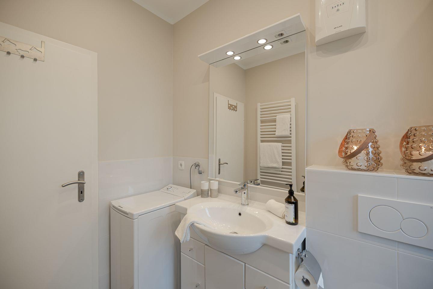Zwei komfortable Schlafzimmer mit gemütlichen Boxspringbetten sorgen für einen erholsamen Schlaf nach einem erlebnisreichen Tag. Das moderne Badezimmer verfügt über eine großzügige Dusche sowie eine Waschmaschine für zusätzlichen Komfort.