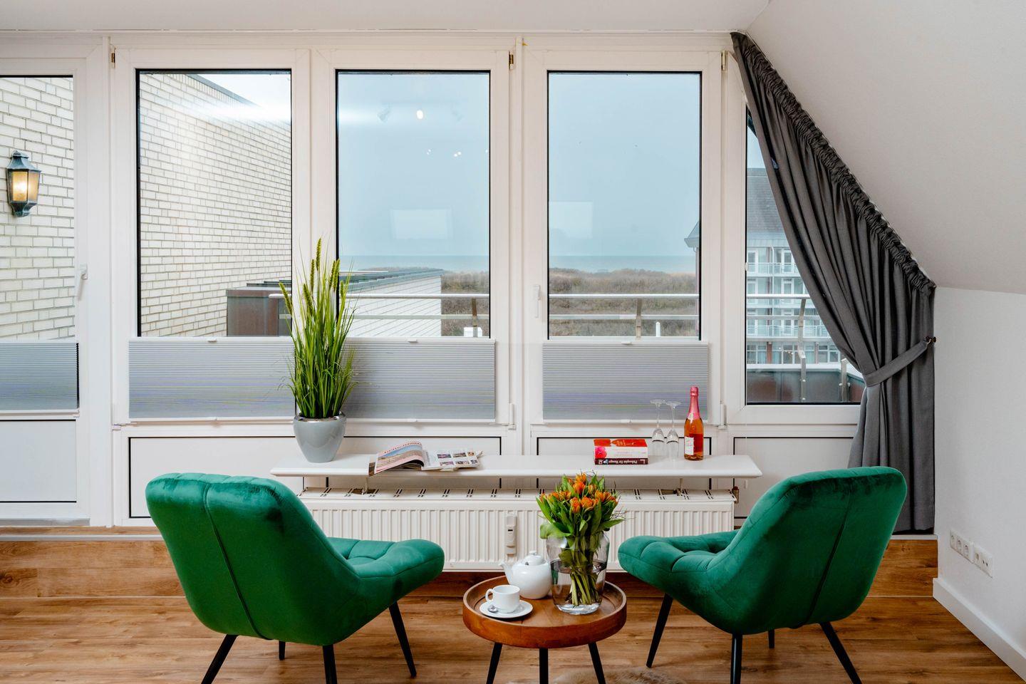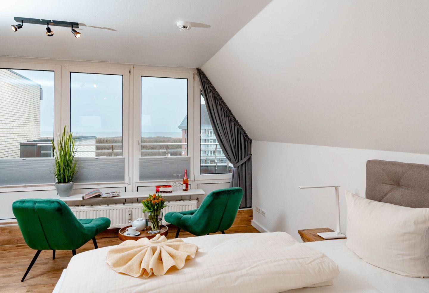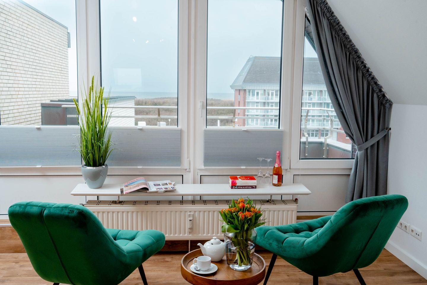 Modernes Penthouse mit Meerblick und Balkonterrasse in Westerland, ideal für entspannte Nordseeferien.
