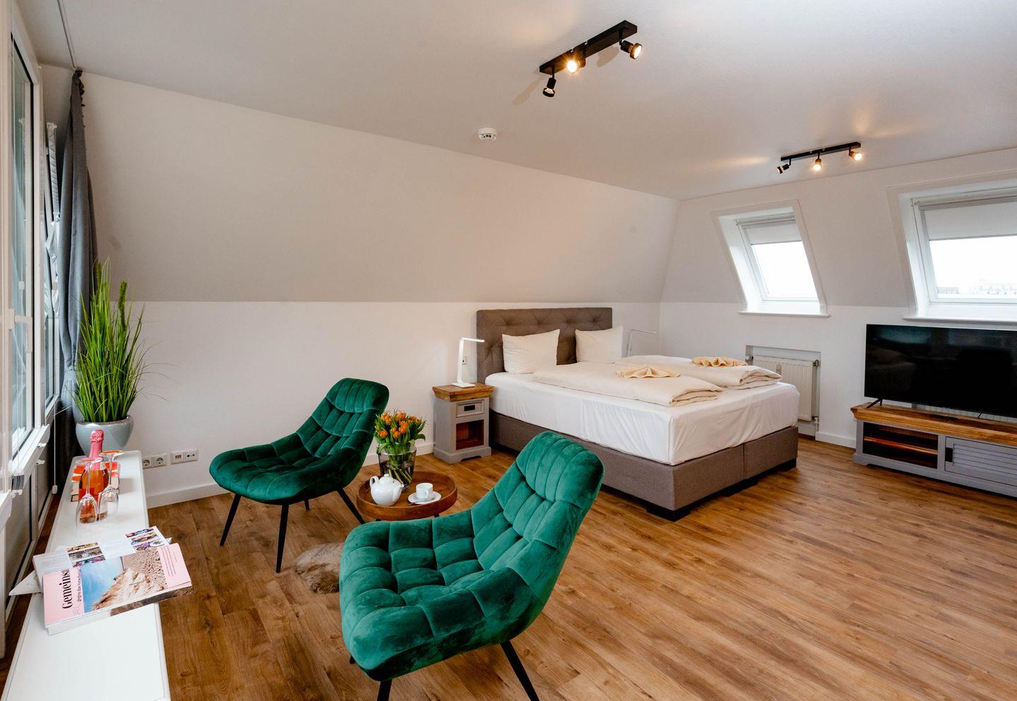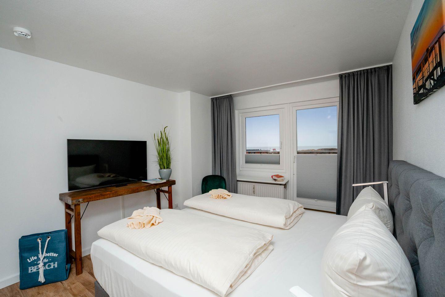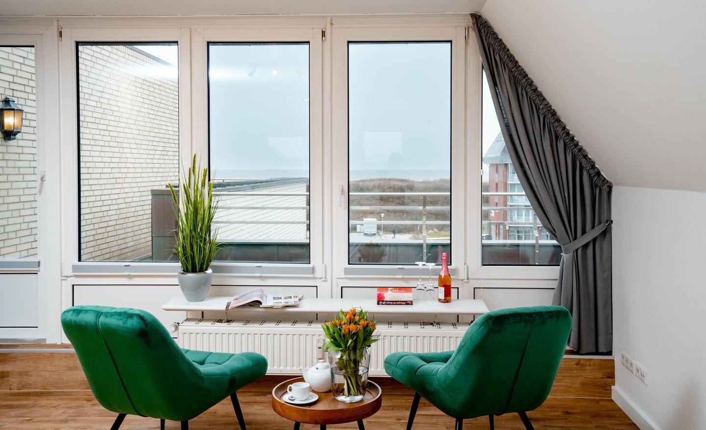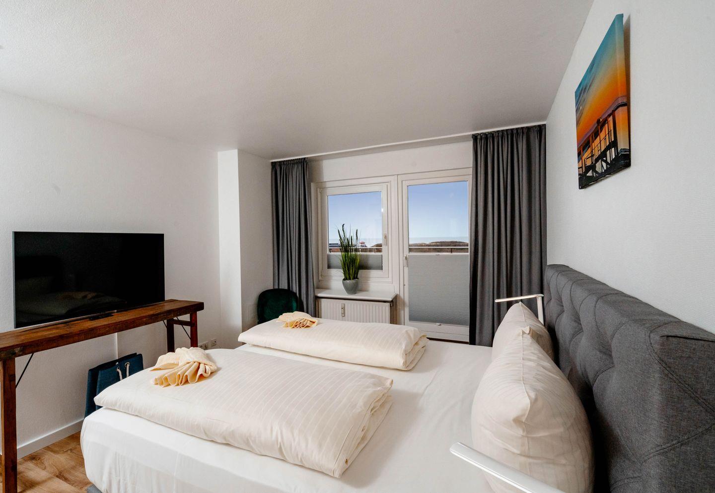 Modernes Penthouse mit Meerblick und Balkonterrasse in Westerland, ideal für entspannte Nordseeferien.