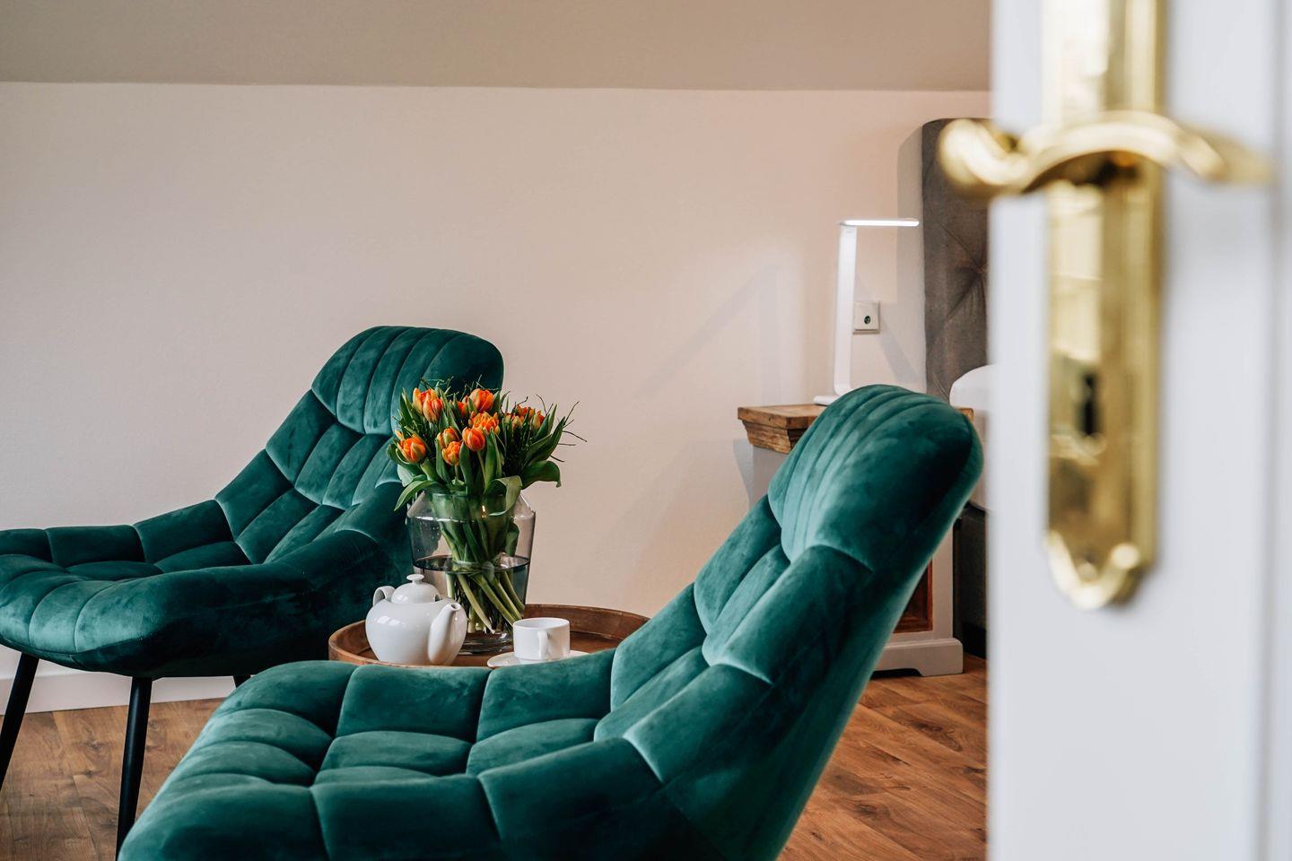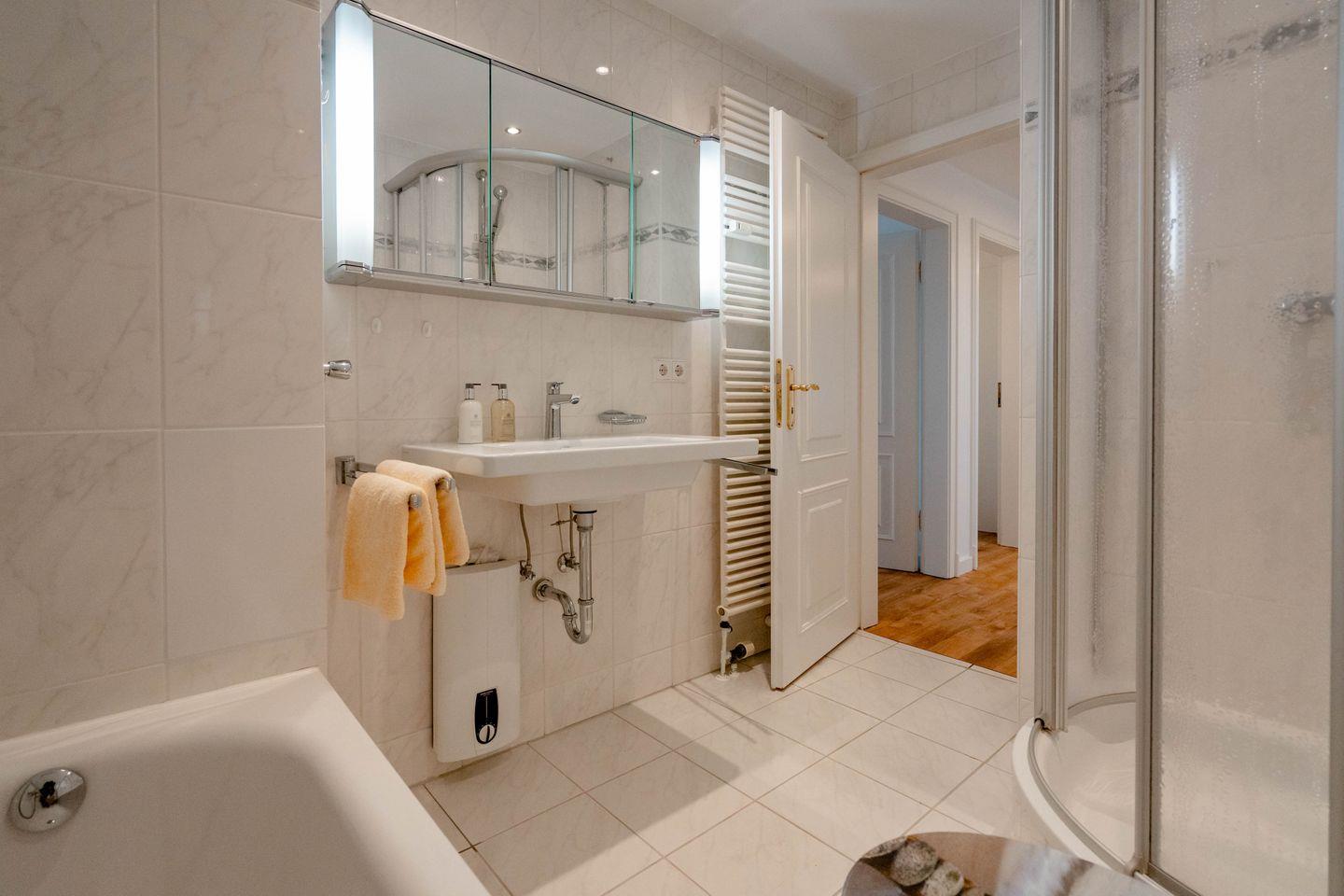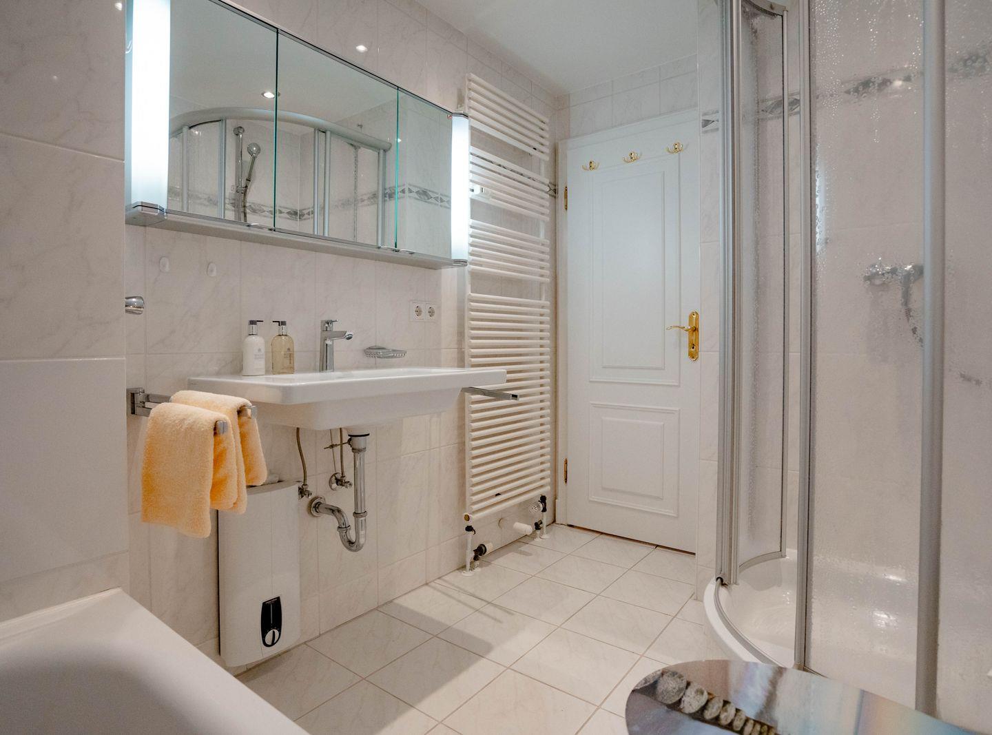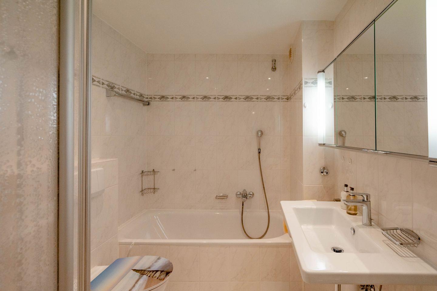 Die separate Küche, ganz in Weiß, ist gut ausgestattet, von der Spülmaschine bis zur Mikrowelle fehlt es an nichts, das Bad glänzt – ebenfalls in Weiß ¬– sogar mit einer Wanne. Waschmaschine und Trockner stehen im Haus zur gemeinschaftlichen Nutzung parat. Die Einrichtung der Ferienwohnung ist hell und freundlich, Meerblau setzt frische Akzente. Die Lage? Perfekt, denn hier oben herrscht Ruhe, die lebendigen Fußgängerzonen der Inselhauptstadt, der Supermarkt, Kneipe, Boutiquen und Restaurants sind genauso nah, wie der Brandenburger Strand, alles ist nur einen Mini-Fußmarsch entfernt.